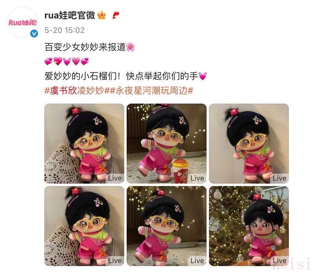 據(jù)悉,被告關(guān)聯(lián)公眾號Rua娃吧,其官方微博曾發(fā)布多個虞書欣出演影視劇角色定制的棉花娃娃,包括《永夜星河》林妙妙、《蒼蘭訣》小蘭花等,并于電商平臺同步售賣。