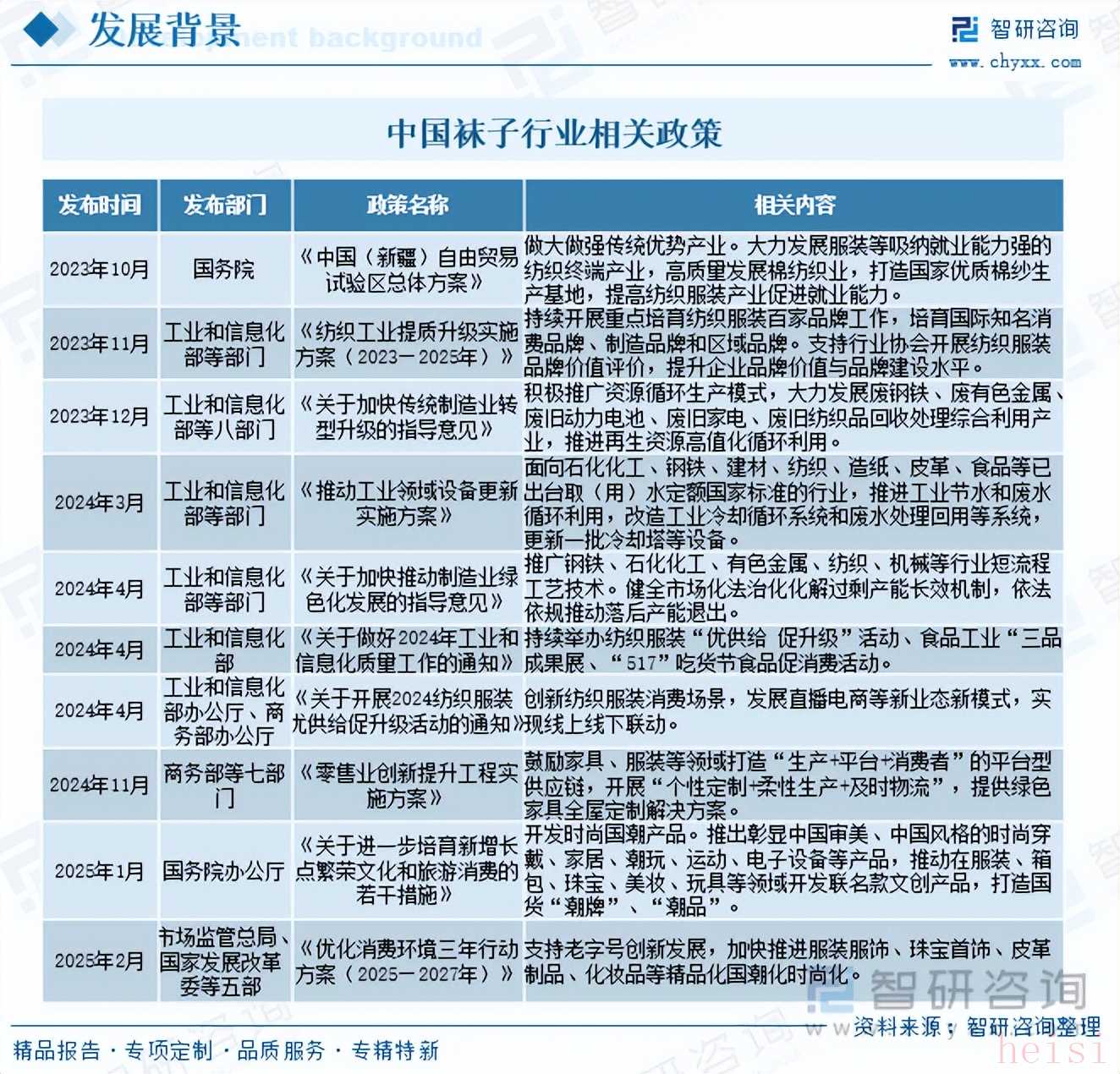 更多關(guān)于襪子產(chǎn)業(yè)的深度研究及全面數(shù)據(jù),請關(guān)注智研咨詢官網(wǎng)或公眾號(智研咨詢),您也可以咨詢了解智研咨詢重磅發(fā)布的《中國襪子行業(yè)市場全景分析及前景戰(zhàn)略研判報(bào)告》。