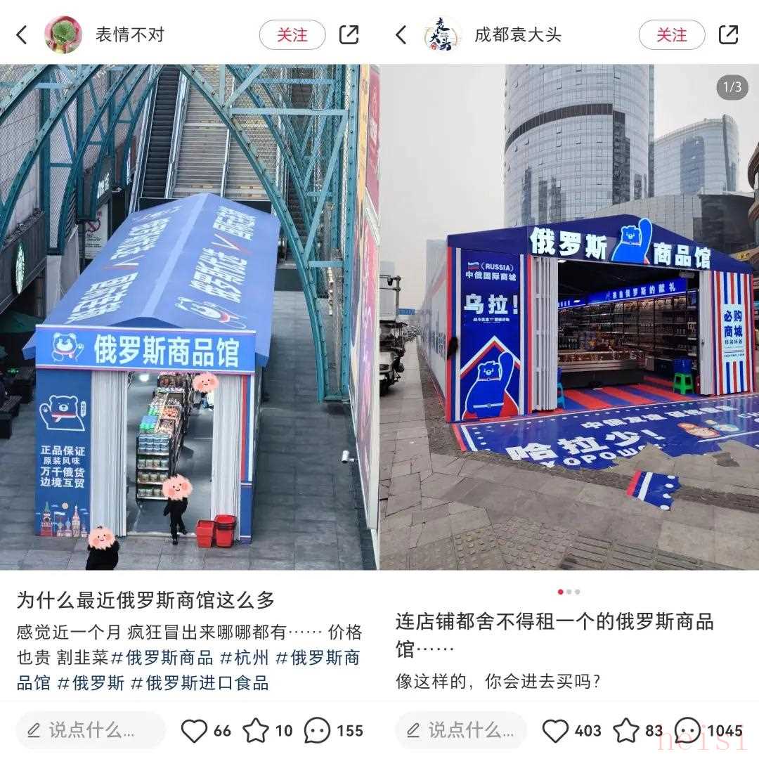 僅在杭州市內(nèi),就已經(jīng)有了6家主打俄羅斯進(jìn)口商品的超市,杭州周邊,紹興也開了6家俄貨店,四線城市衢州陸續(xù)開起3家俄貨店,有著“世界義烏”的金華,也出現(xiàn)了多家俄貨店……它們有的租下店面打造出超市業(yè)態(tài),有的則只是在商場廣場上用戶外篷房開店,主打一個(gè)“隨時(shí)撤退”。但可以肯定的是,越來越多俄羅斯商品館開始出現(xiàn)在全國各地。