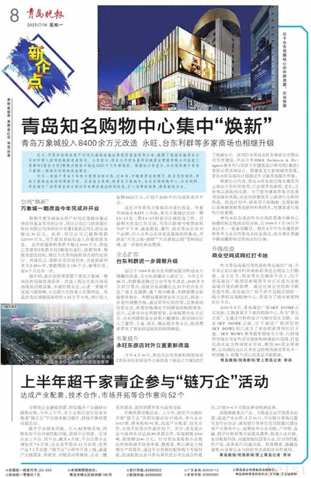 您提到的萬(wàn)象城(Universal City Mall)、永旺(AEON Mall)和臺(tái)東利群(Liqun Taidong)確實(shí)是青島非常知名的購(gòu)物中心。您說(shuō)的沒(méi)錯(cuò),這幾家以及青島其他的許多大型購(gòu)物中心近年來(lái)都掀起了一股“煥新”熱潮。