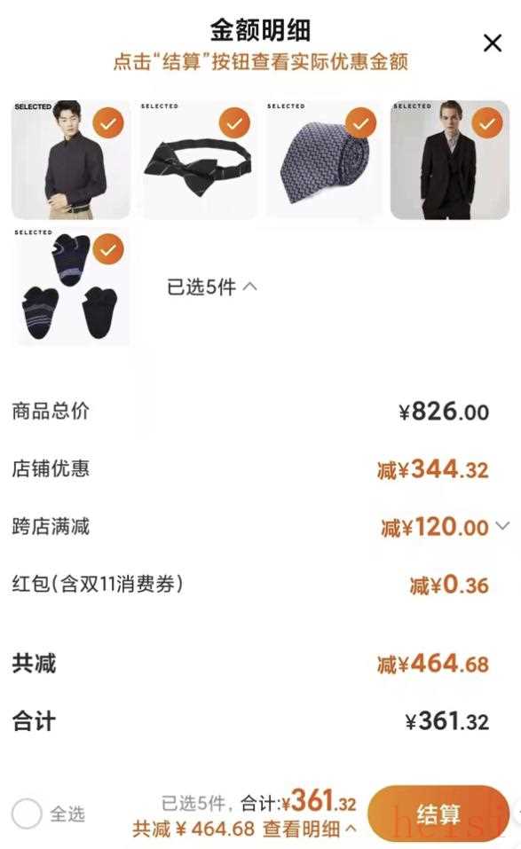 下面的幾款衣物,涵蓋了內(nèi)搭、外套和領(lǐng)帶、領(lǐng)結(jié)等配飾,還貼心地配上了襪子,店鋪原價近九百