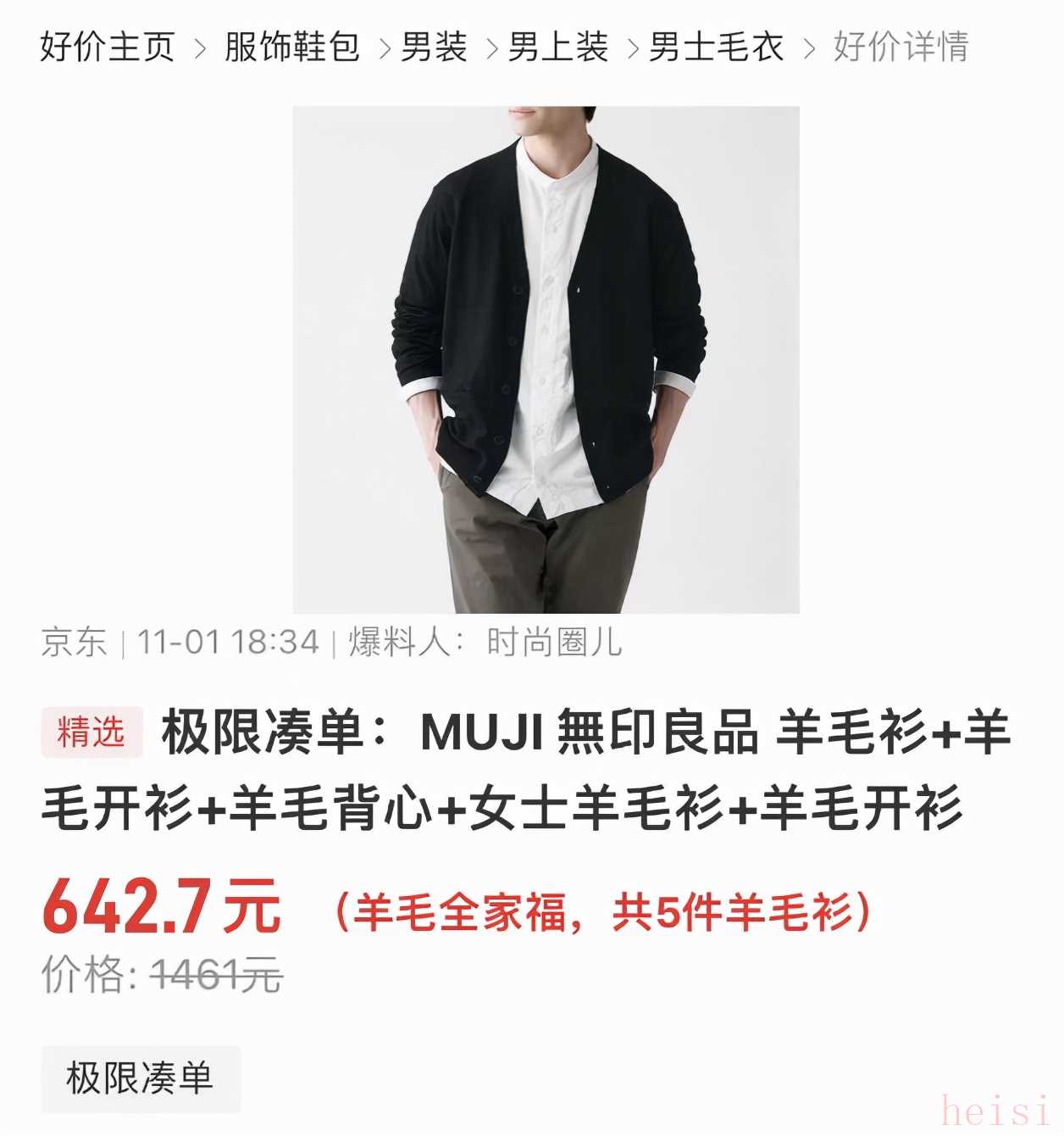 無印良品羊毛衫5件六百多,這樣的價格你見過嗎?疊加多件折扣,領(lǐng)取大額優(yōu)惠券,你就能做到!