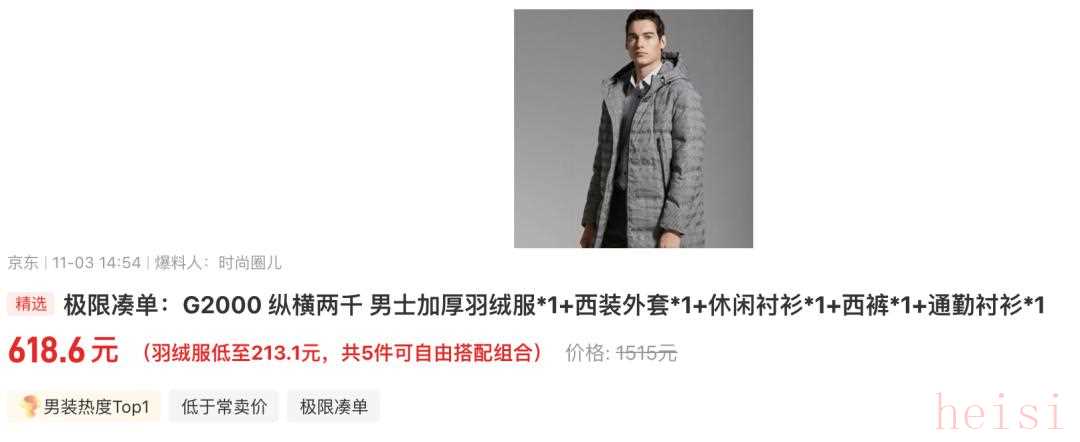 G2000商場同款羽絨服搭配上西裝外套、襯衫、西褲,居然只要六百出頭就能入手,還有好幾款自由搭配方案!