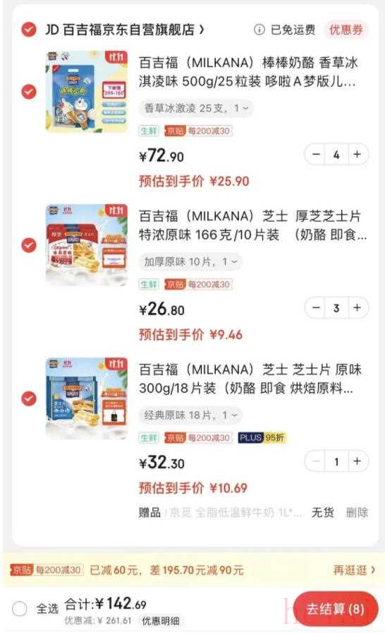 說完生鮮,再來看看零食~奶酪愛好者在哪里?你們喜歡奶酪棒還是芝士片?小孩子才做選擇,成年人表示全都要!根據(jù)圖中的組合下單,比單買便宜好幾倍~