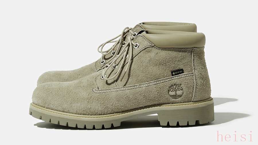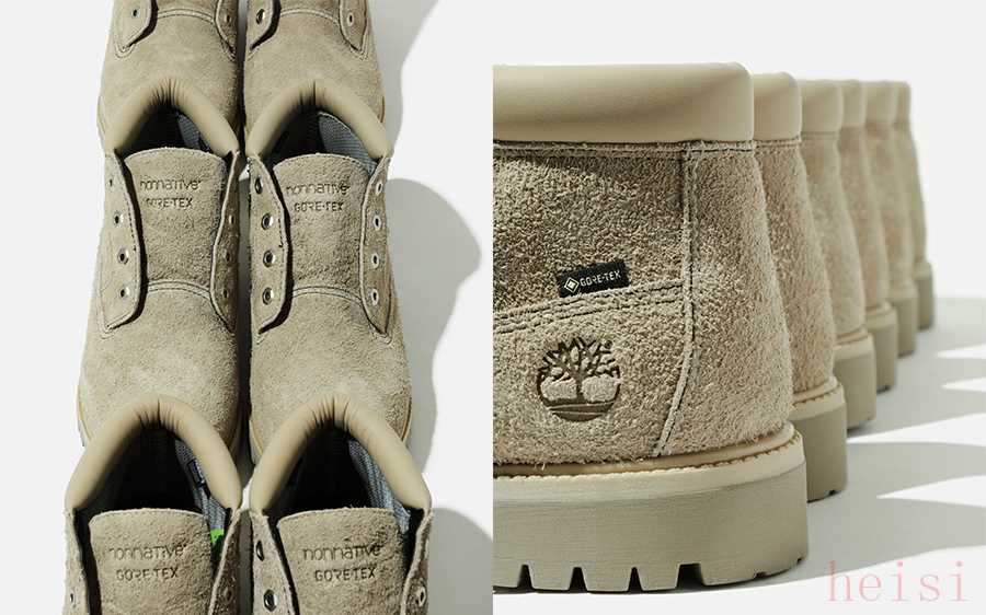 CHUKKA 是 Timberland 標(biāo)志性 6 英寸防水靴的輕便版本,更適合夏季穿搭。這次 nonnative 合作款的鞋面以質(zhì)感十足的長毛絨麂皮制成,同時裝飾了黑白對比縫線。并且它有 GORE-TEX 防水科技加持,這在 CHUKKA 型號上還是首次。