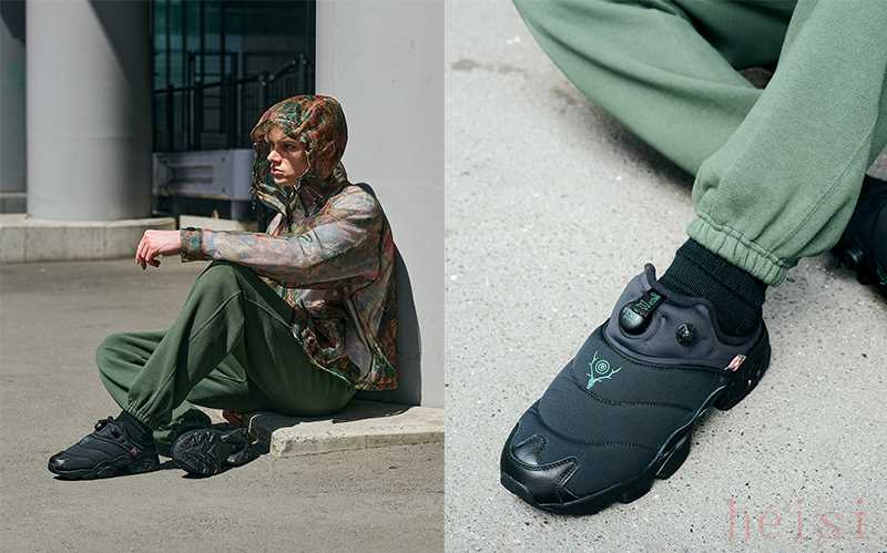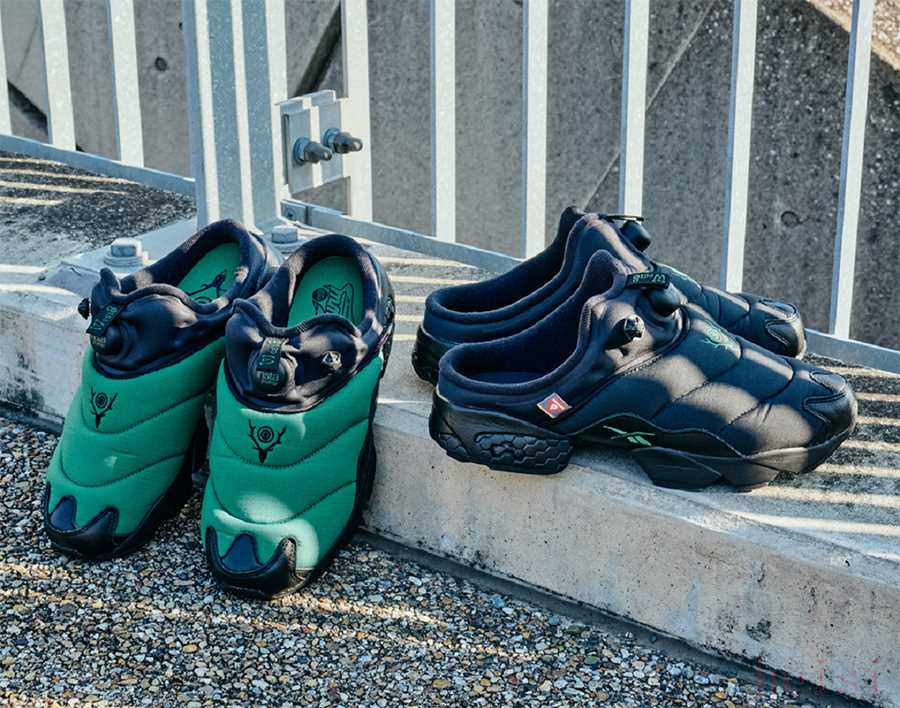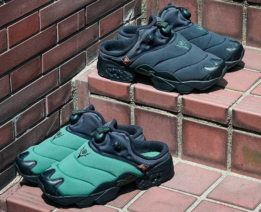 7 月 18 日,銳步和 South2 West8 的第三個合作企劃正式亮相。這次合作以日本北部的自然風(fēng)光和飛釣為靈感,雙方對 Instapump Fury 做出了大膽改造,呈現(xiàn)了“一腳蹬”的全新穆勒鞋型號。