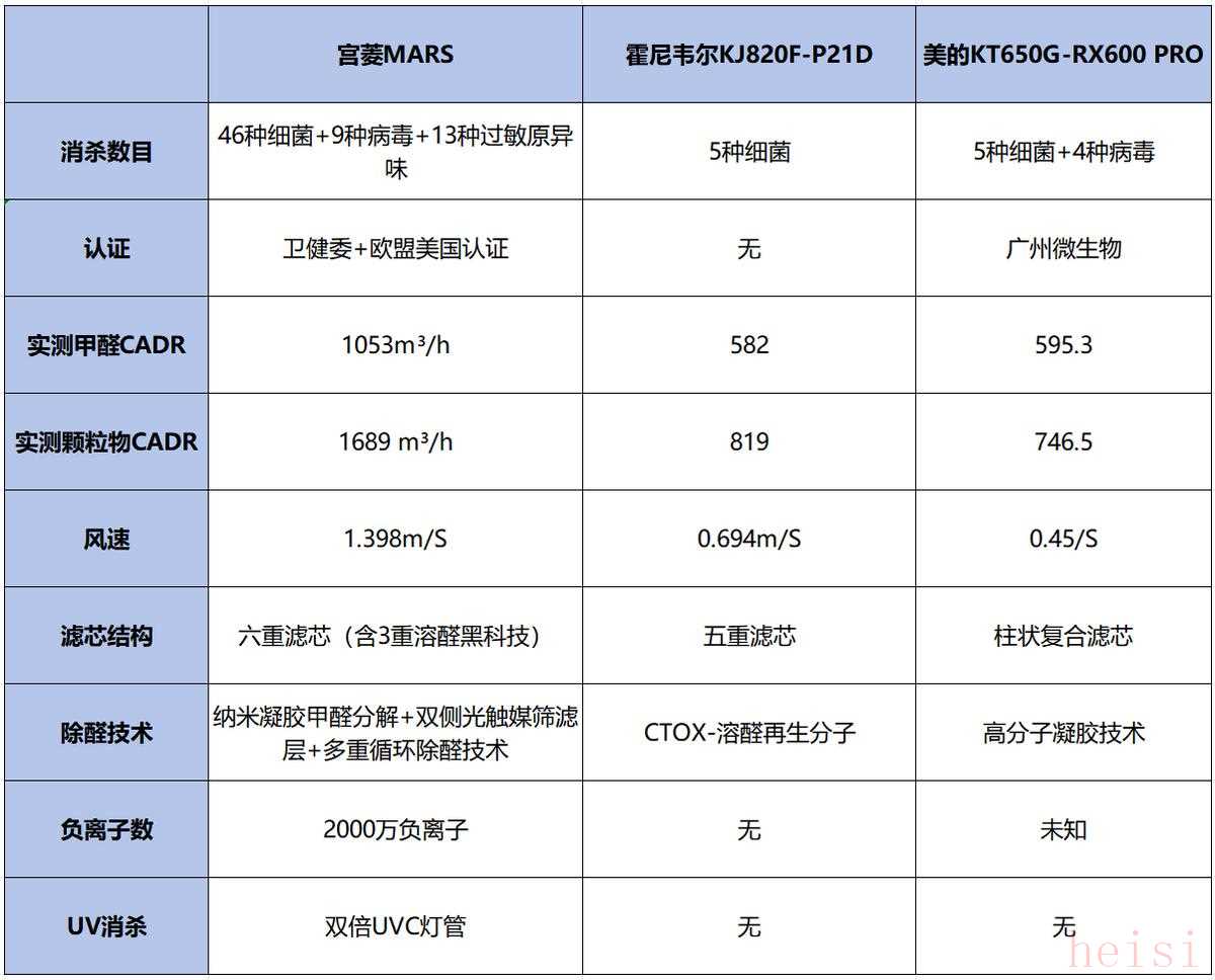 霍尼韋爾、宮菱、美的空氣凈化器好用嗎?基于對霍尼韋爾、宮菱、美的三款空氣凈化器的基本介紹,其核心性能的差異顯著體現(xiàn)在關鍵參數(shù)上。以下表格集中展示了影響實際凈化效果的核心指標,為客觀比較提供數(shù)據(jù)基礎。