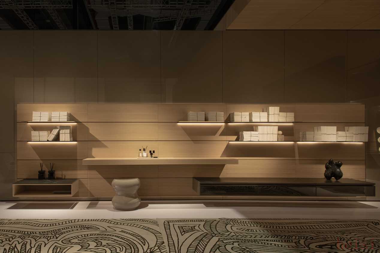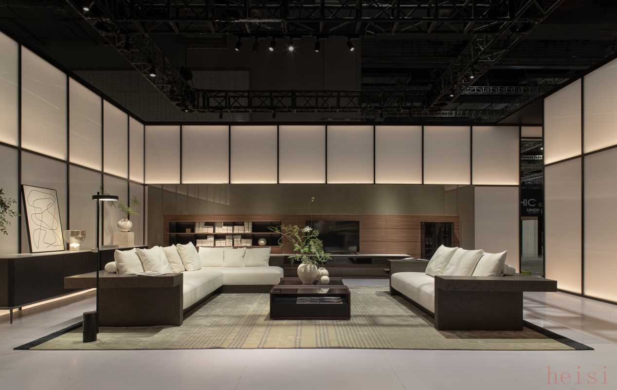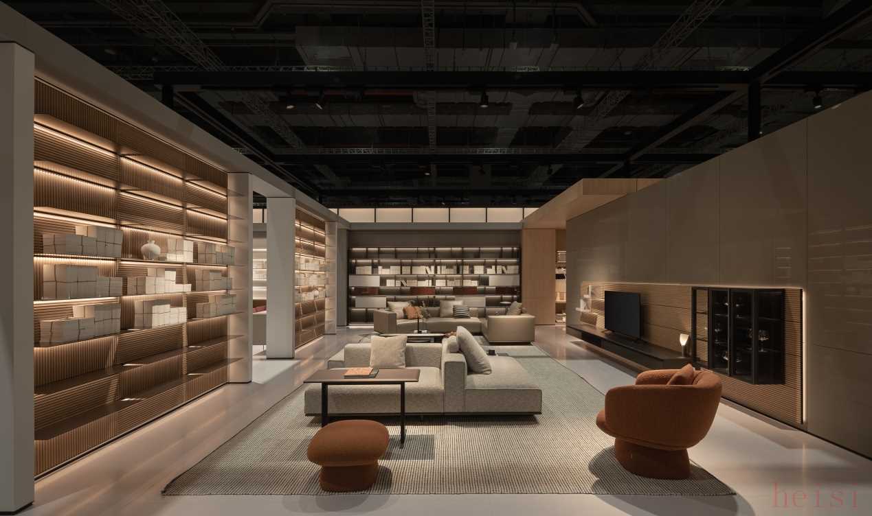 整體空間既有圍合感,又相對(duì)獨(dú)立。展位墻面利用HC28 SPACE定制系統(tǒng)串聯(lián),以不同飾面賦予空間不同風(fēng)格,雖為“護(hù)墻”,但時(shí)刻謹(jǐn)記給墻面留白,讓空間呼吸,HC28|都匯里2024全新設(shè)計(jì)作品陳列其中。HC28|都匯里 全景設(shè)計(jì),將定制系統(tǒng)與活動(dòng)家具的色彩和材質(zhì)全部打通,實(shí)現(xiàn)空間色彩與風(fēng)格的一致性。HC28品牌空間無論從定制家具的飾面,或者活動(dòng)家具的面料選擇,都秉承自然穩(wěn)重,質(zhì)感天然、肌理細(xì)膩的原則;都匯里品牌空間則色彩飽滿,大膽張揚(yáng)。