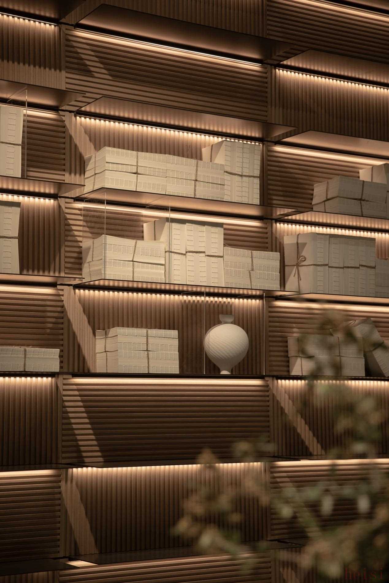 此次展位依舊采用可重復(fù)使用的金屬結(jié)構(gòu)和更為耐用的樹脂玻璃進(jìn)行裝飾,線條簡(jiǎn)約流暢,光潔平直。煥新后的展場(chǎng)總面積達(dá)1000㎡,整體色調(diào)以白色、自然橡木色為主,同時(shí)增加了科技感與時(shí)尚感并存的金屬色,營(yíng)造出舒適、松弛、藝術(shù)與未來的視覺感受。