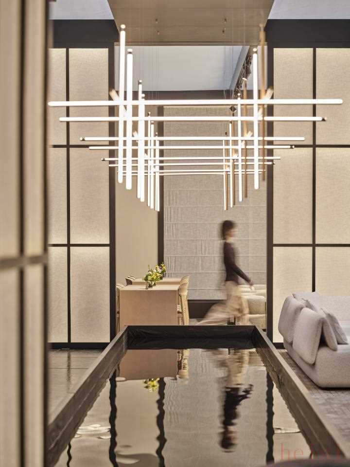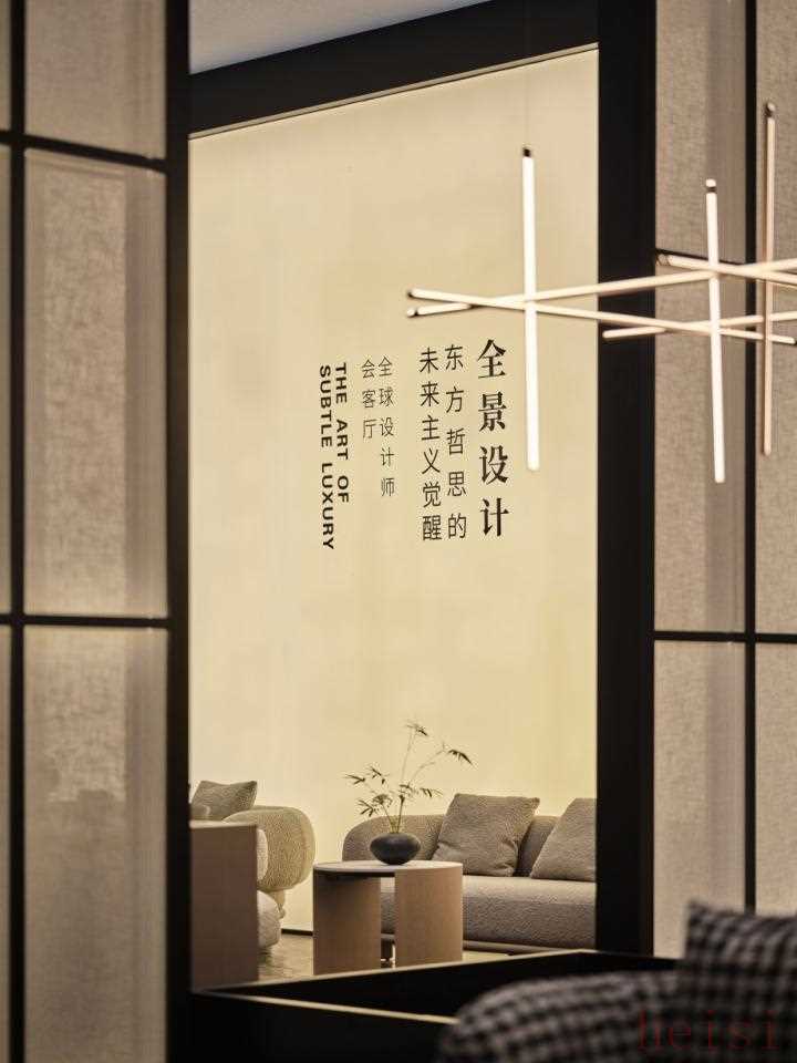 步入展廳內(nèi)部,四個(gè)主題會(huì)客廳分別以“共生”“對(duì)話”“靜觀”“未來”為關(guān)鍵詞展開敘事。通過差異化的材質(zhì)、光影與動(dòng)線設(shè)計(jì),詮釋東方美學(xué)的多元層次,既彰顯國(guó)際視野,又暗藏東方氣韻。