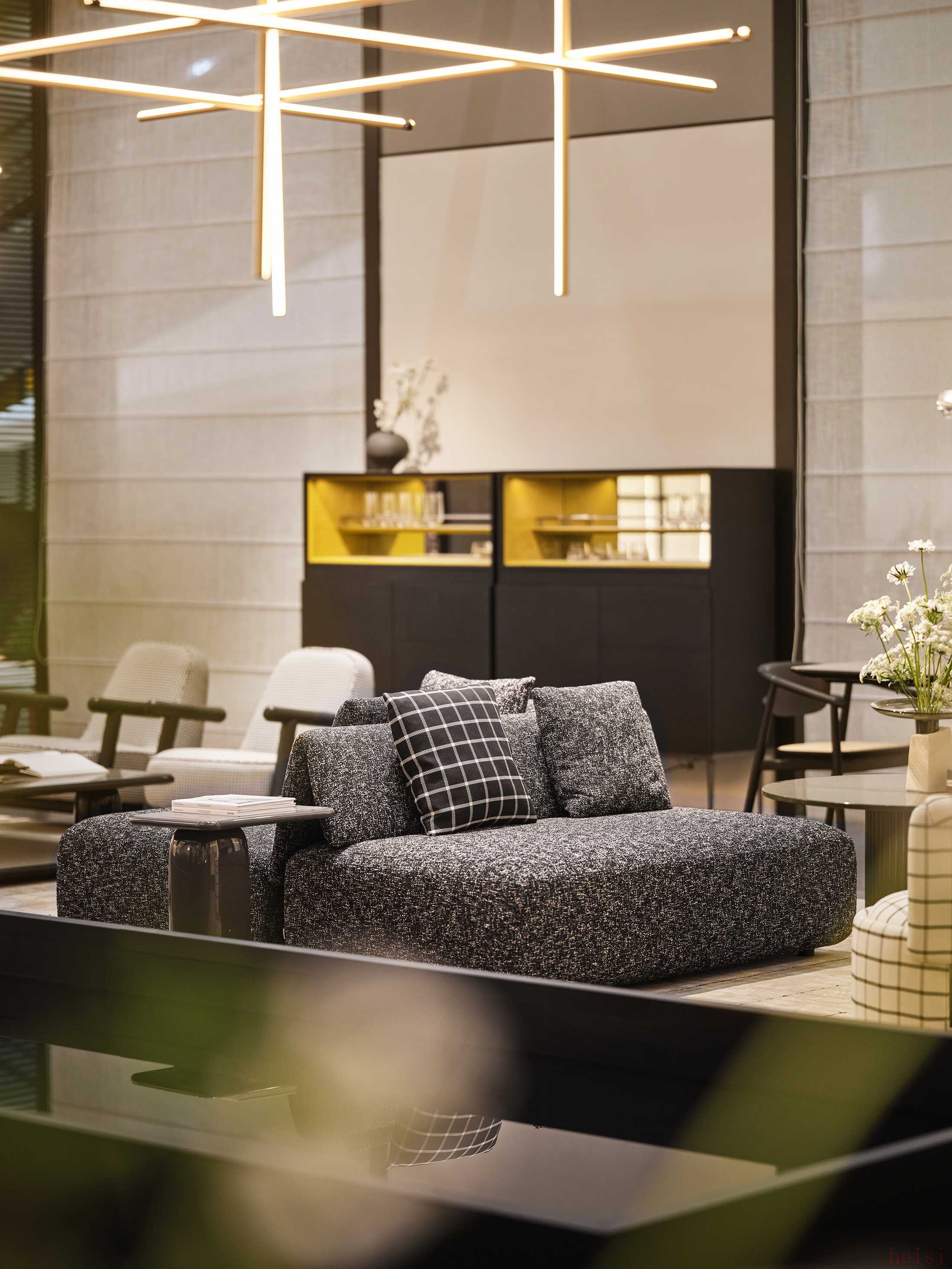東方待客之道,講究“以禮為骨,以和為魂”。HC28以此為靈感,在CIFF廣州上重構(gòu)“全球設(shè)計(jì)師會(huì)客廳”——以全景設(shè)計(jì)思維打破傳統(tǒng)家居的物理邊界,將空間轉(zhuǎn)化為承載東方哲思的精神場(chǎng)域。品牌以流動(dòng)的平面布局消弭定制家具與活動(dòng)家具的割裂感,通過虛實(shí)相生的立面構(gòu)建,賦予空間呼吸感與包容性,這不僅是對(duì)人居功能的革新,更是對(duì)東方生活方式與精神內(nèi)核的當(dāng)代轉(zhuǎn)譯。