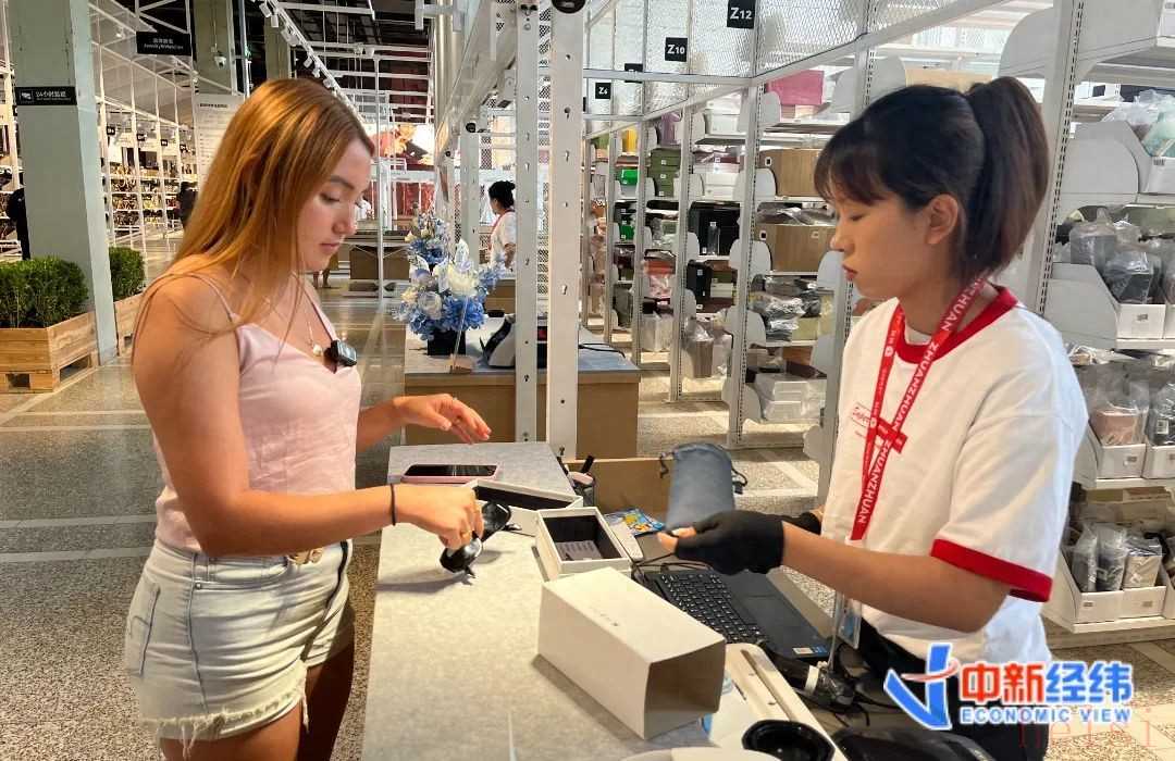 美國游客Tais在結(jié)算臺檢查商品 中新經(jīng)緯 魏薇攝