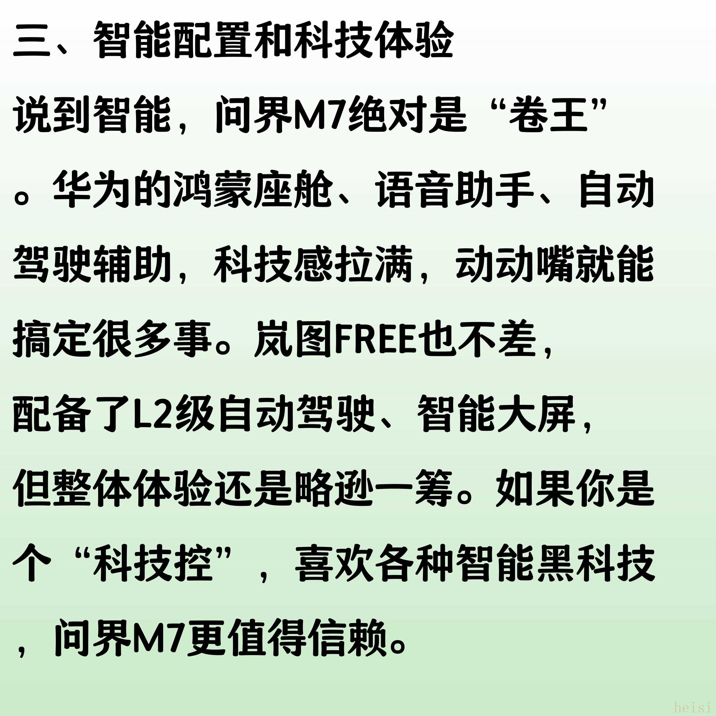 說到底,嵐圖FREE和問界M7其實各有千秋,關(guān)鍵還是看你更看重啥。嵐圖FREE底盤調(diào)校和操控確實有點東西,適合喜歡駕駛樂趣的朋友;問界M7智能化做得挺到位,日常用車體驗也很貼心。如果追求性價比和科技感,問界M7挺合適;想要駕控和品質(zhì),嵐圖FREE可以考慮?,F(xiàn)在國產(chǎn)新勢力都在發(fā)力,買誰都不算吃虧,主要還是選個自己用著順手的!