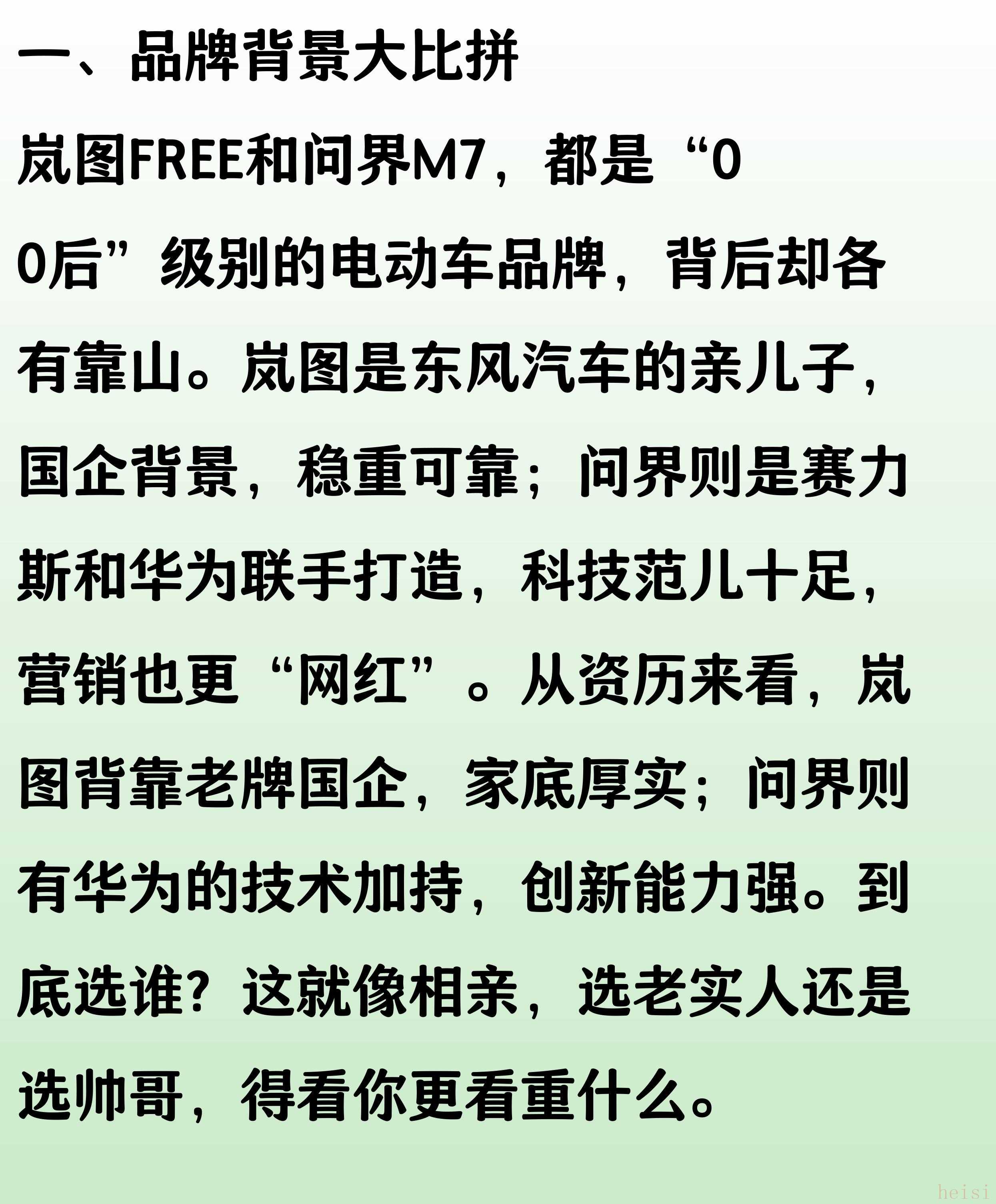 嵐圖FREE和問界M7都是近年來比較熱門的年輕汽車品牌,它們都擁有各自的粉絲群體,誰更值得信任,這需要從多個方面進行分析,并不能簡單地給出一個答案。以下是一些可以幫助你判斷的因素: