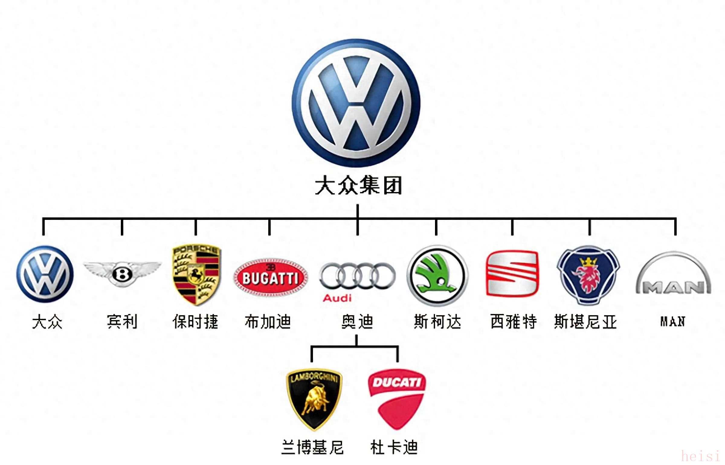 "大眾集團(tuán)旗下12個(gè)品牌,各具特色,覆蓋不同細(xì)分市場(chǎng):"