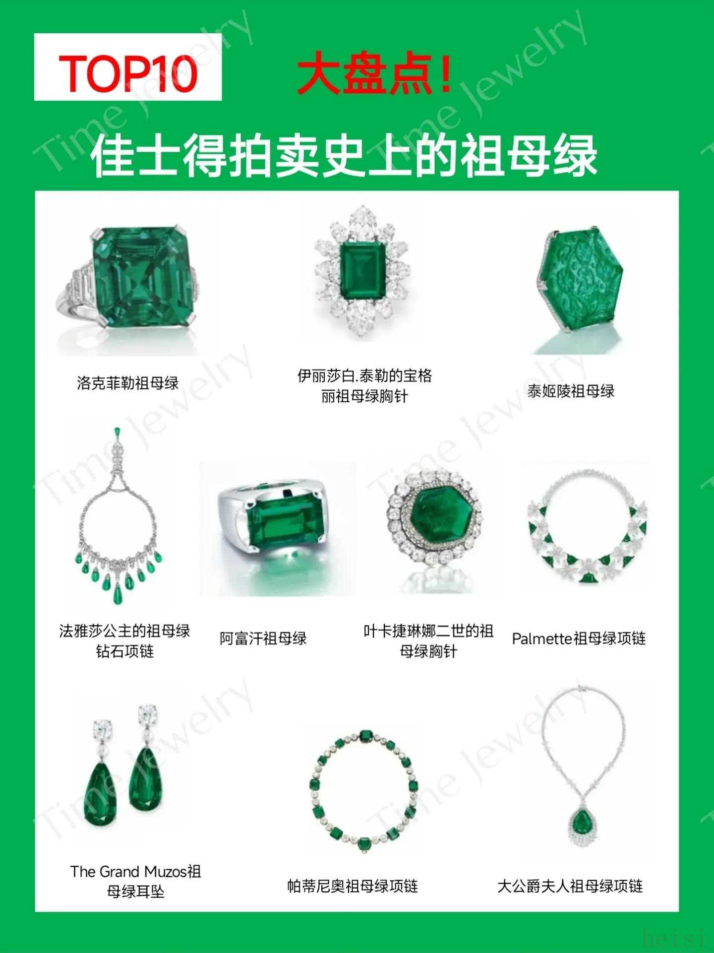 為您整理一份佳士得拍賣史上備受矚目的祖母綠拍賣清單。請(qǐng)注意,“TOP10”帶有一定的主觀性,因?yàn)樵u(píng)價(jià)標(biāo)準(zhǔn)可能包括價(jià)格、歷史意義、品質(zhì)、產(chǎn)地或稀有度等。這份清單綜合考慮了這些因素,并選取了佳士得拍賣史上最具代表性的頂級(jí)祖母綠。