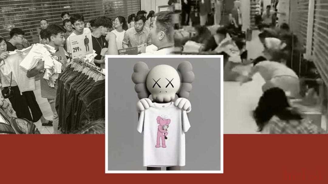 2019年6月3日,優(yōu)衣庫門店前上演了《釜山行》中國版,這個“喪尸片現(xiàn)場”畫面里, 卷簾門未完全開啟,消費者匍匐鉆入;模特身上的樣衣被扒光;99元的T恤,在二手市場炒至千元。