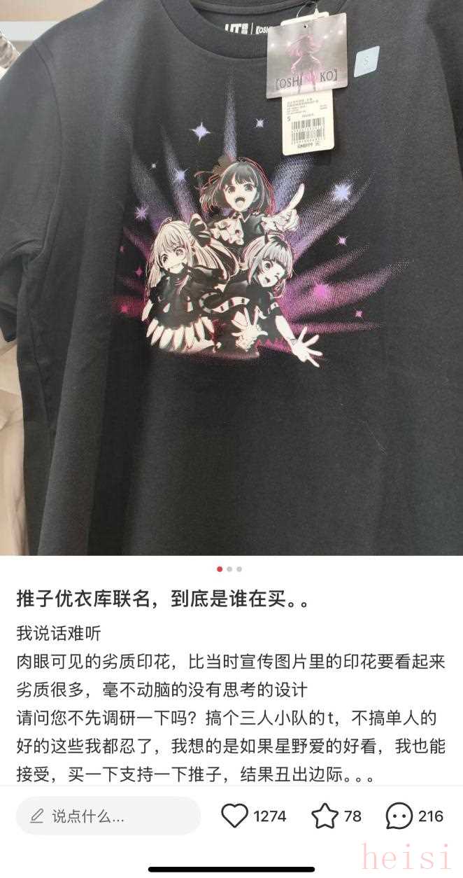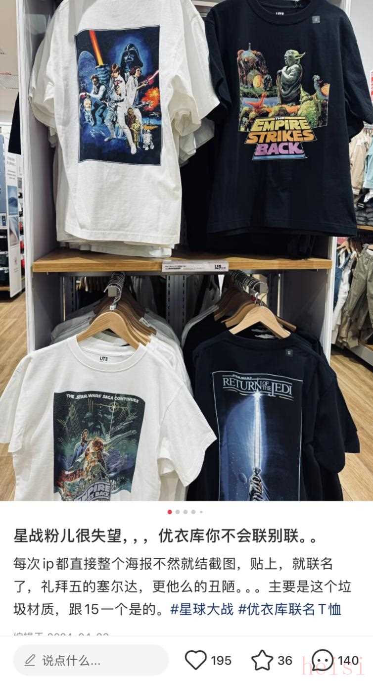 “這兩年優(yōu)衣庫的設(shè)計團隊是不是集體跳槽了? 拿著最頂級的IP,做著最垃圾的設(shè)計,是聯(lián)名不需要花錢么? 每次聯(lián)名,就在T上貼個膠印,胸前一大片夏天死熱不透氣?!卑ⅫS說。
