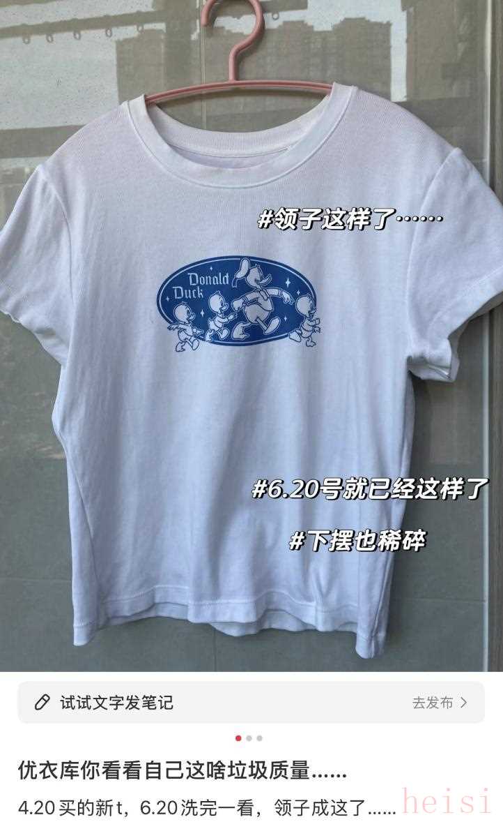 “去年買的褲子穿了半年就磨損得不成樣子,高領(lǐng)毛衣穿了一個月袖子就起球。聯(lián)名T給我的感覺是以前料子摸上去密度大還薄,現(xiàn)在手感沙沙的。”肖菁吐槽道。