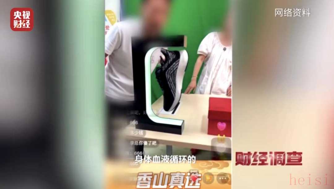 記者假稱合作,進(jìn)入了直播間。主播不斷宣傳一款磁懸浮鞋和鞋墊的獨(dú)家專利及神奇功效。