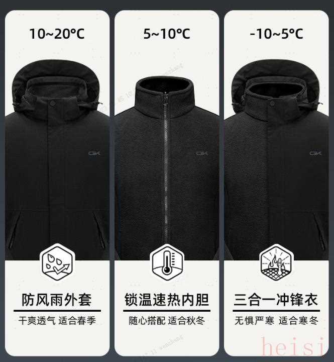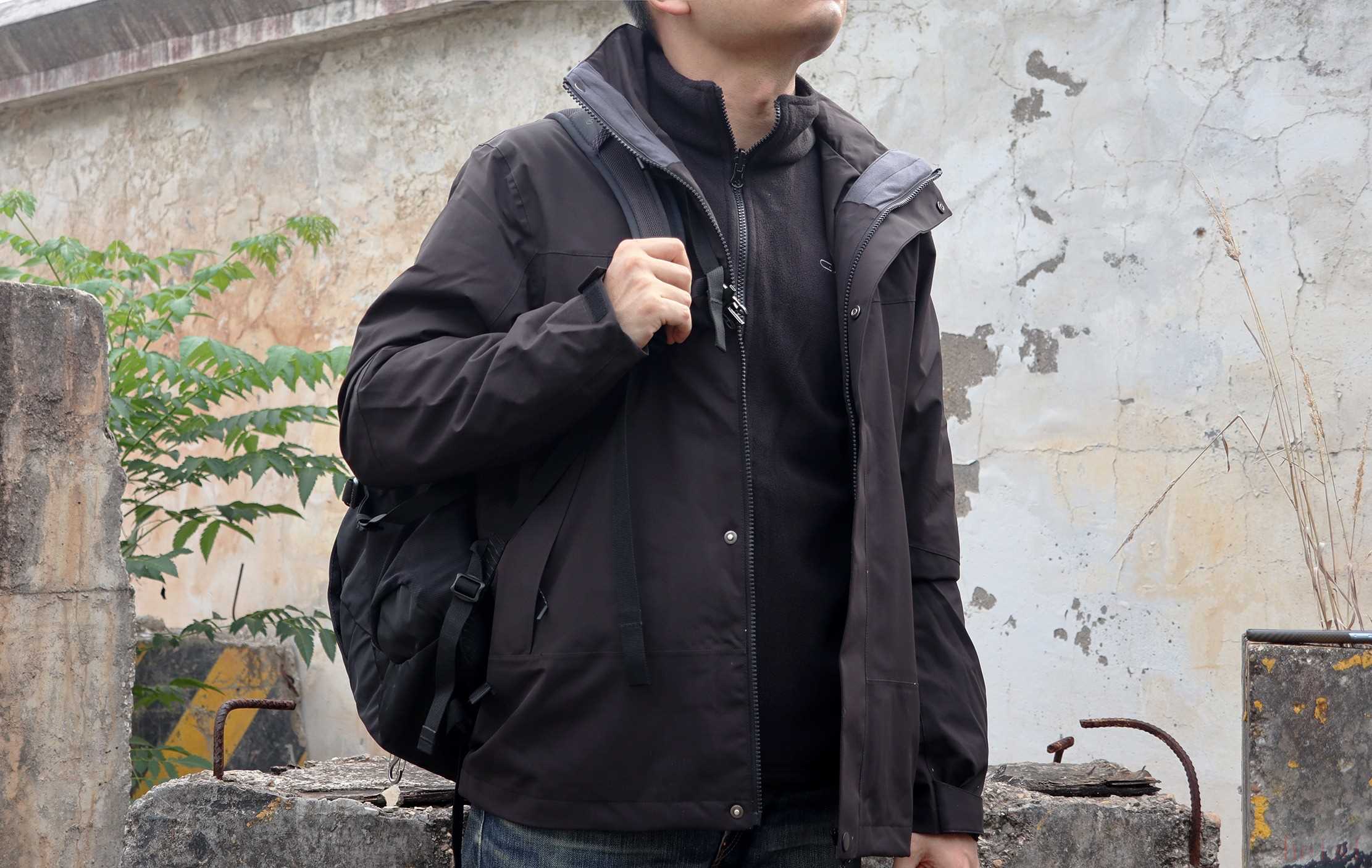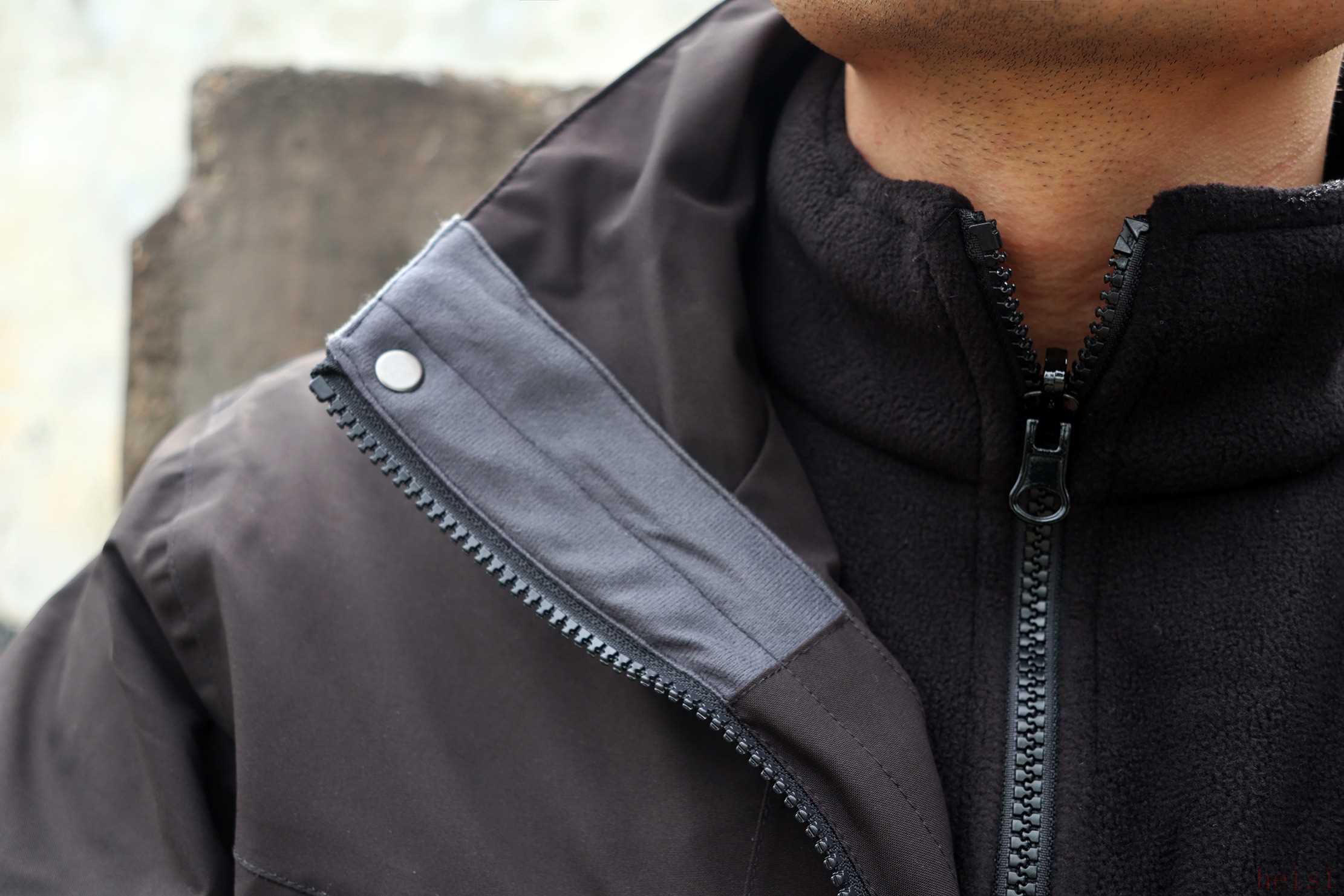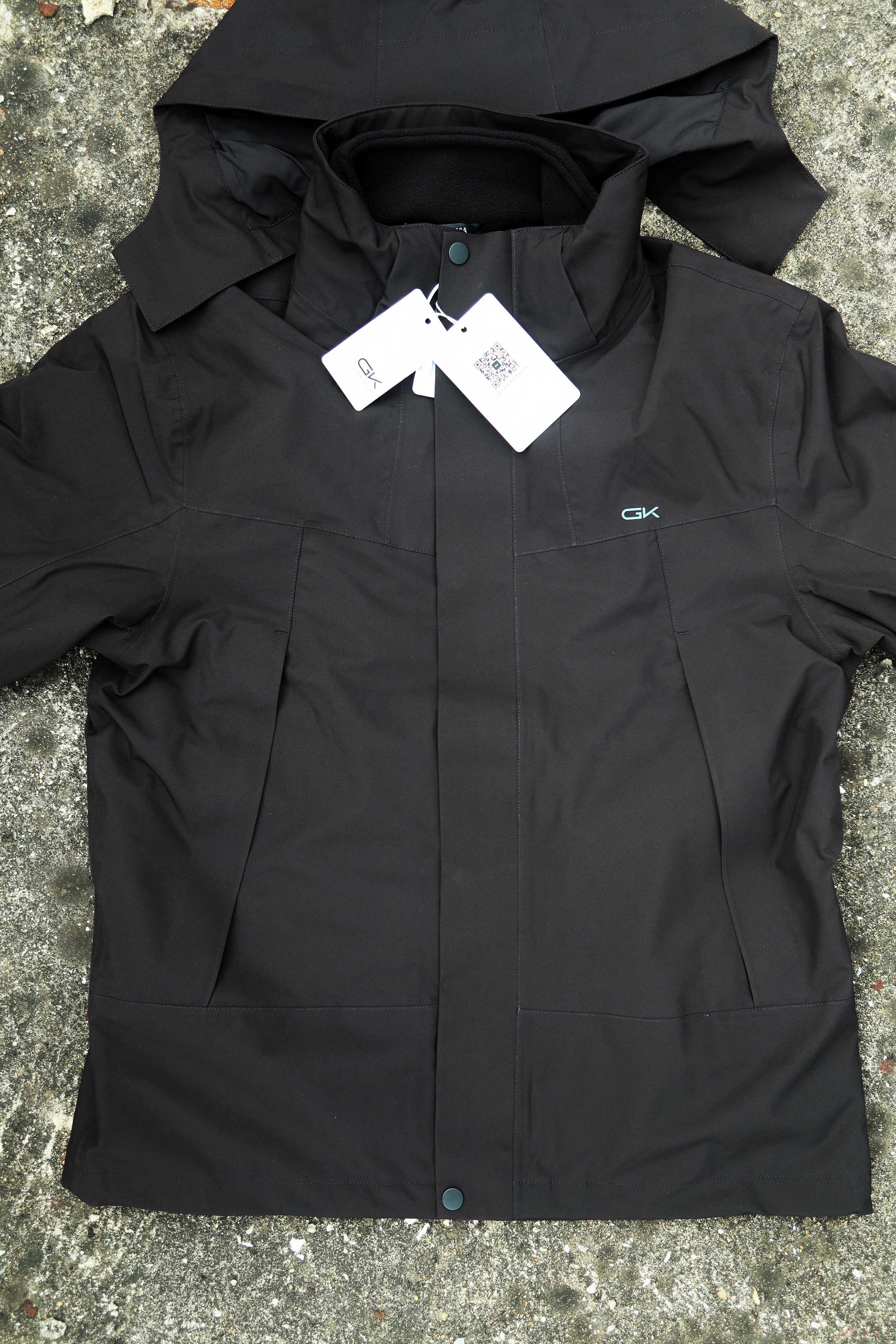 GaKior三合一沖鋒衣套裝則為外層加內(nèi)膽組合,內(nèi)膽通過按扣和拉鏈與外殼固定整體穩(wěn)固,鎖溫能力能夠滿足-10℃至5℃低溫,鎖溫同時(shí)還有很好的透濕效果。