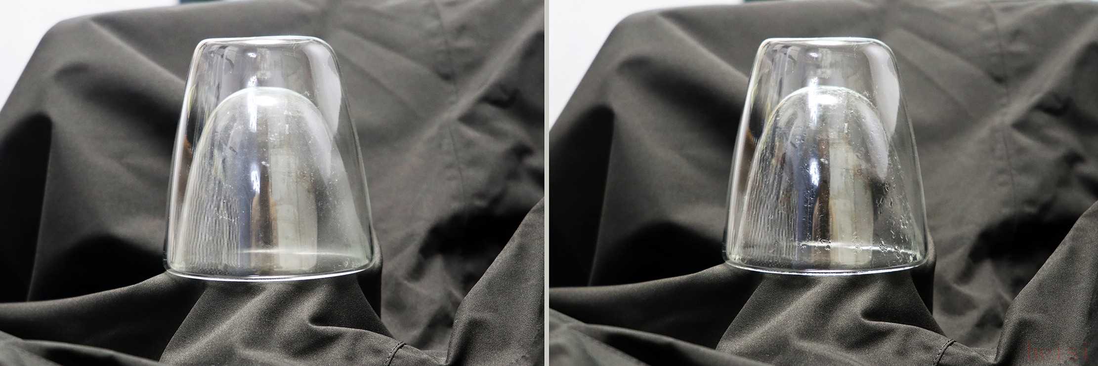 GaKior戶外沖鋒衣在透氣性方面表現(xiàn)極為出色,嘗試用外層蓋住裝滿熱水的水杯,上方再蓋一個(gè)透明杯子,很快久能夠看到有冷凝水出現(xiàn),10分鐘左右上方原本干的杯壁上掛滿了水珠。