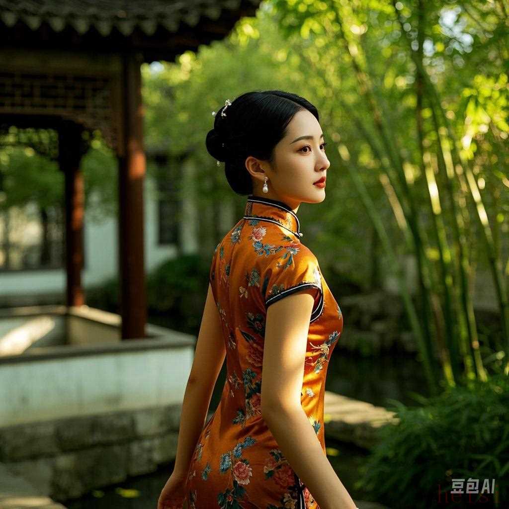 "線條流暢:" 旗袍的剪裁通常流暢自然,貼合人體曲線,既展現女性身材之美,又不失端莊典雅,體現了東方審美的含蓄之美。