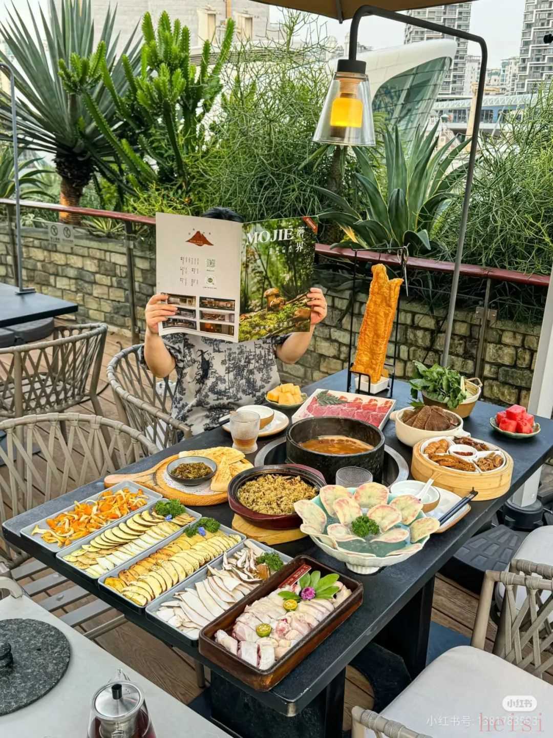 蕓山季,主打云南野生菌火鍋,以“18種名貴野生菌+宣威火腿+飼養(yǎng)180天的林養(yǎng)走地雞+古法熬制”的湯底,迅速登頂各城市火鍋熱門榜。