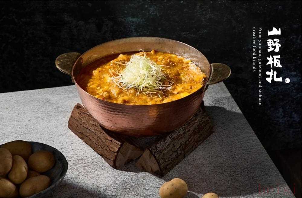 山野板扎,將云貴川元素作為基碼,運用西南山區(qū)的食材結(jié)合西式烹飪手法,加入木姜子油等富有地區(qū)特色的食材,所有菜品均為手工制成,地方特色濃郁。云南銅鍋油燜雞,土豆泥吸飽了雞肉的鮮,又綿又糯入口絲滑;貴陽酸湯牛肉,酸酸辣辣非常開;洋芋火腿燜飯,火腿是靈魂,加持了土豆和米飯……