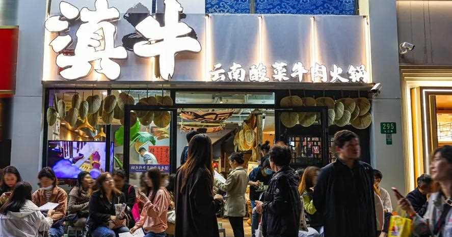 選用玉溪新平傣家酸菜、非遺匠制的富源酸蘿卜絲的云南酸菜鍋底,搭配云南特色菜品黃牛肉、蒙自餌塊、石屏燒豆腐等,口味新奇的滇牛首店在上?!耙慌诙t”,而后一年半開出超120家門店,成為酸湯火鍋頭部品牌。