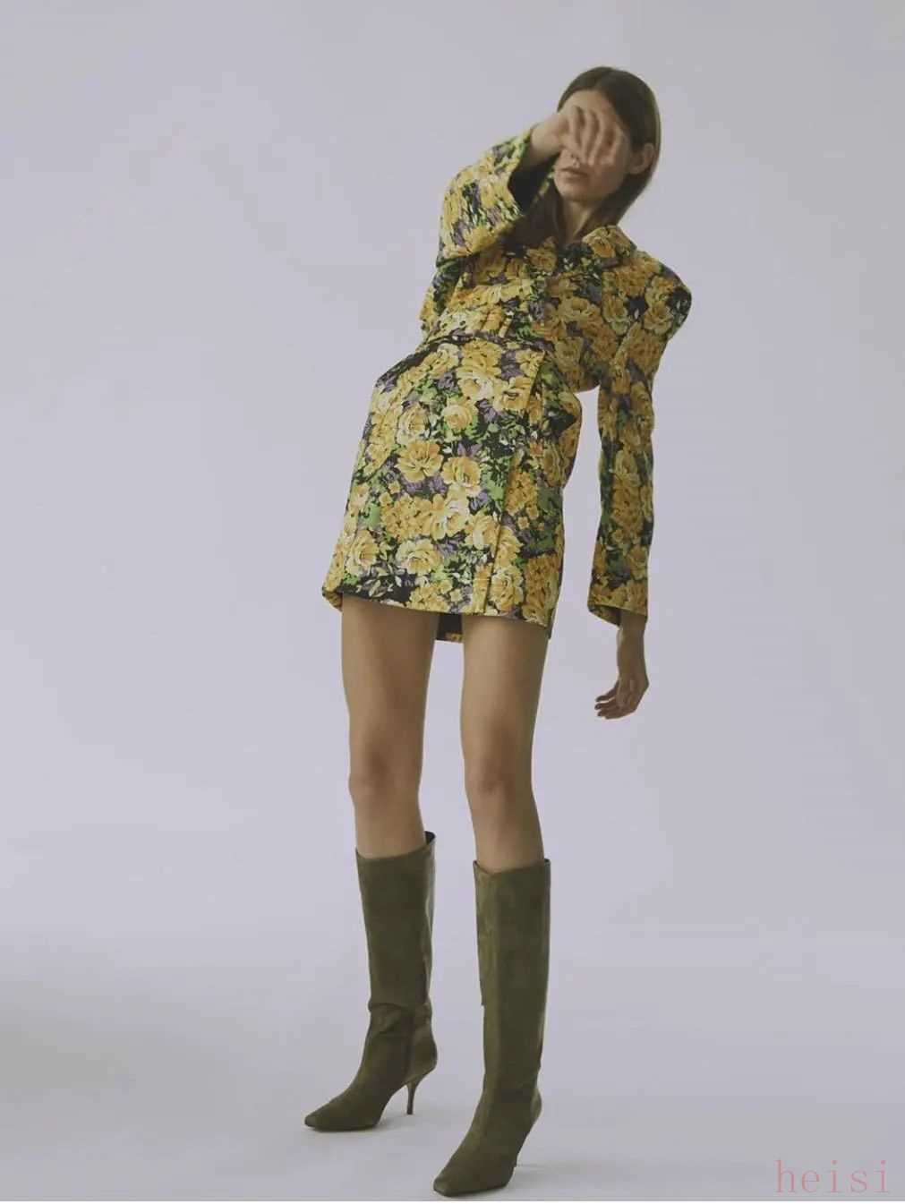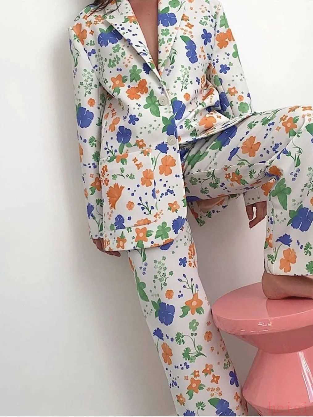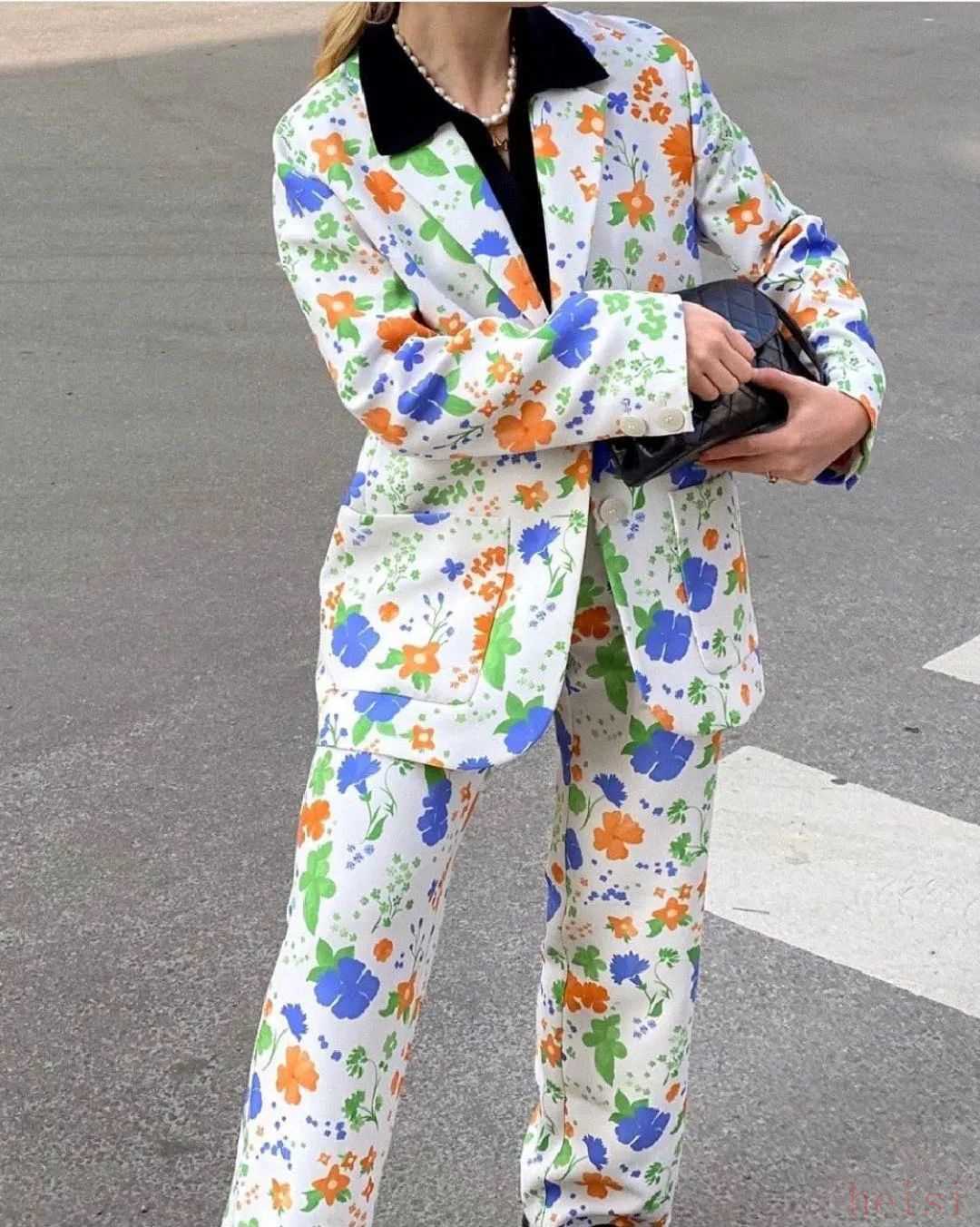 大膽一點的,還可以選擇這套大面積印花西裝,也非常有復古時尚sense,大朵花卉熱情奔放,一改往日的禁欲感,張力十足。