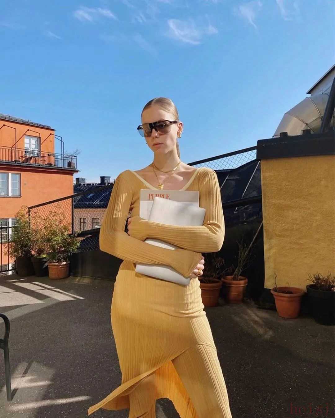 學習時裝博主Alyssa,單穿一件撞色的Roxanne打底衫就可以不余遺力地展現(xiàn)造型感,營造出一種色彩分明的時尚搭配,將時髦拿捏得很穩(wěn)。