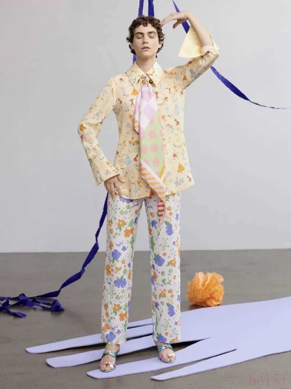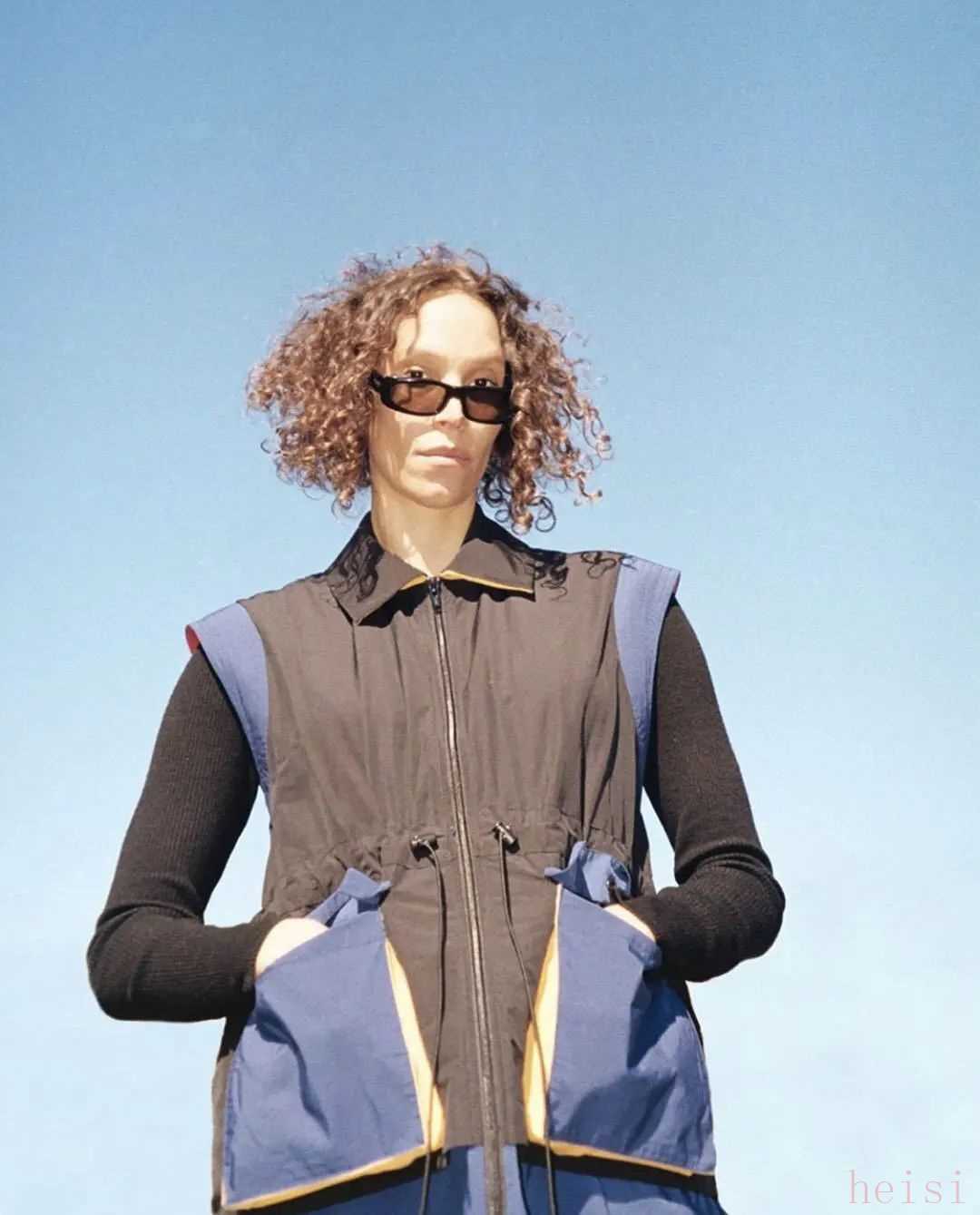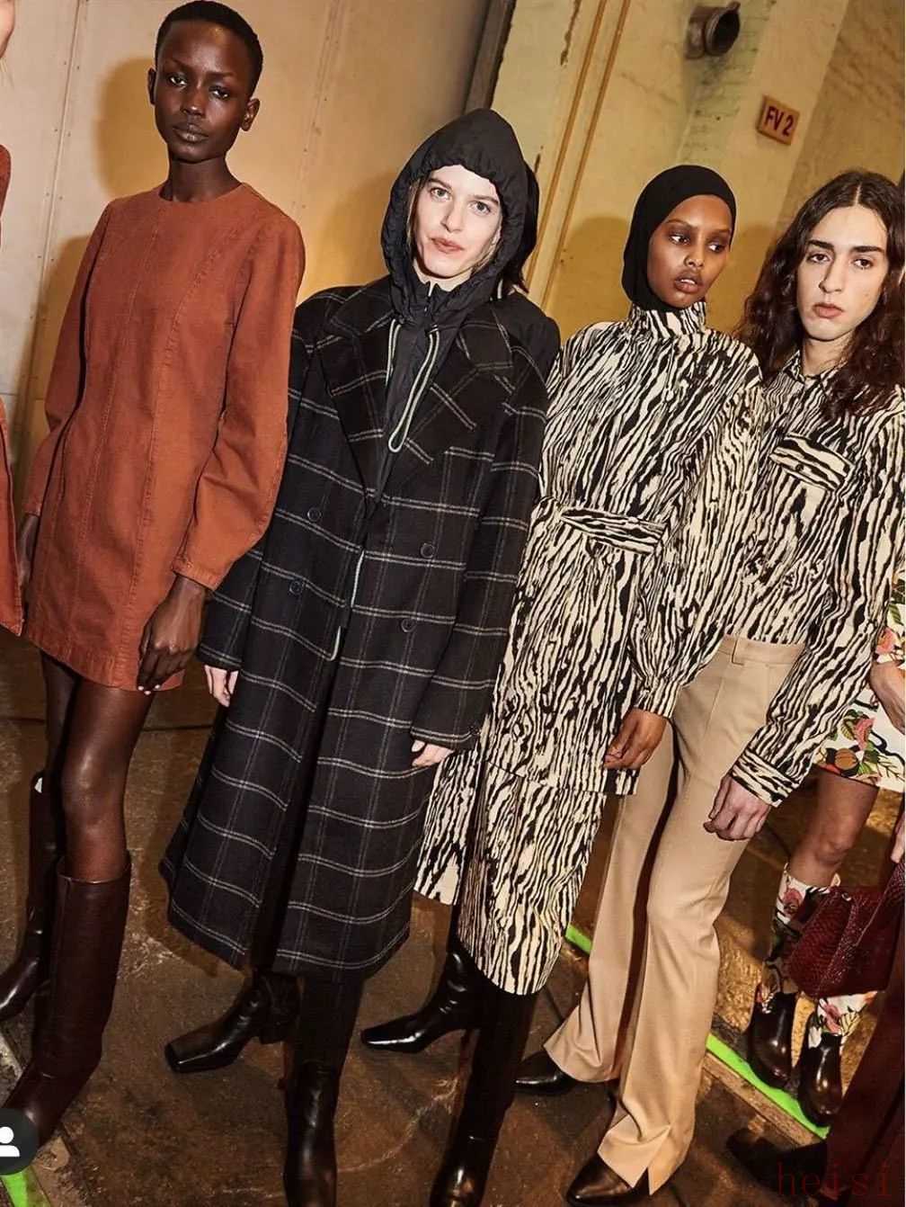 一向喜歡用黑白灰裝裹自己的藝術家Chloé,這次也換上了色彩飽和又搶眼的橘色外套,將色彩概念發(fā)揮到淋漓盡致。