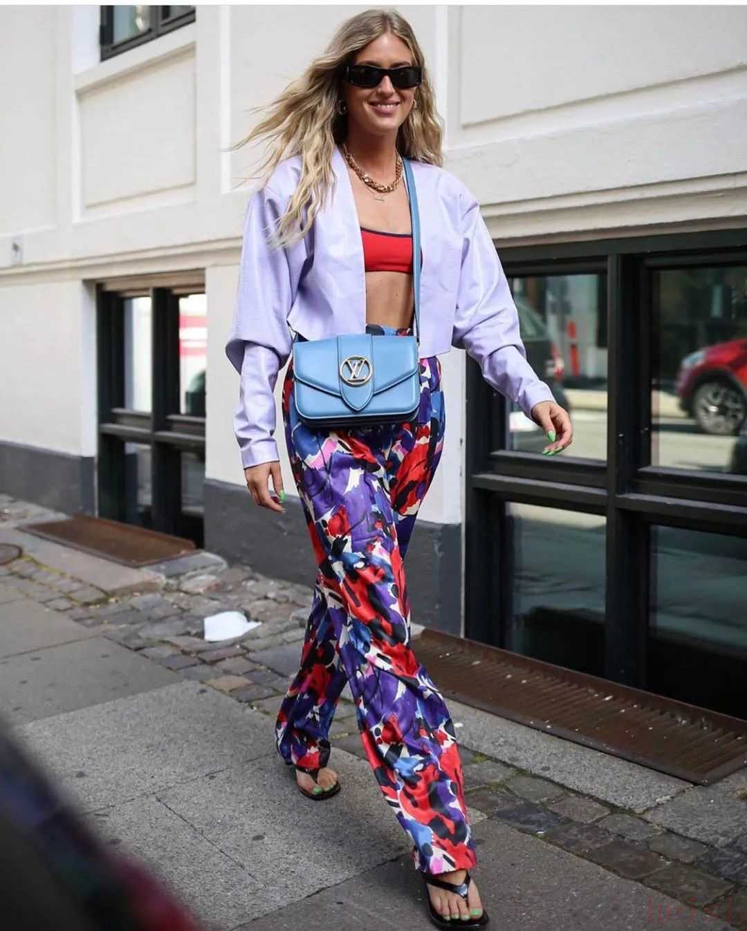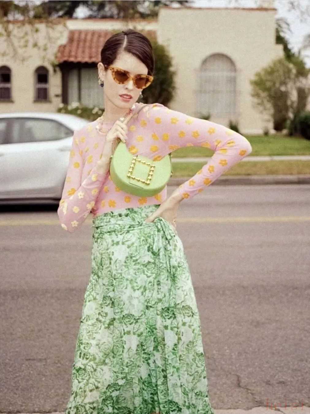 她的拿手戲就是玩配色以及印花,高飽和又難駕馭的顏色,她不但敢穿,還要配合著更亮眼的顏色穿,所以看她的街拍,從來不會覺得乏味。