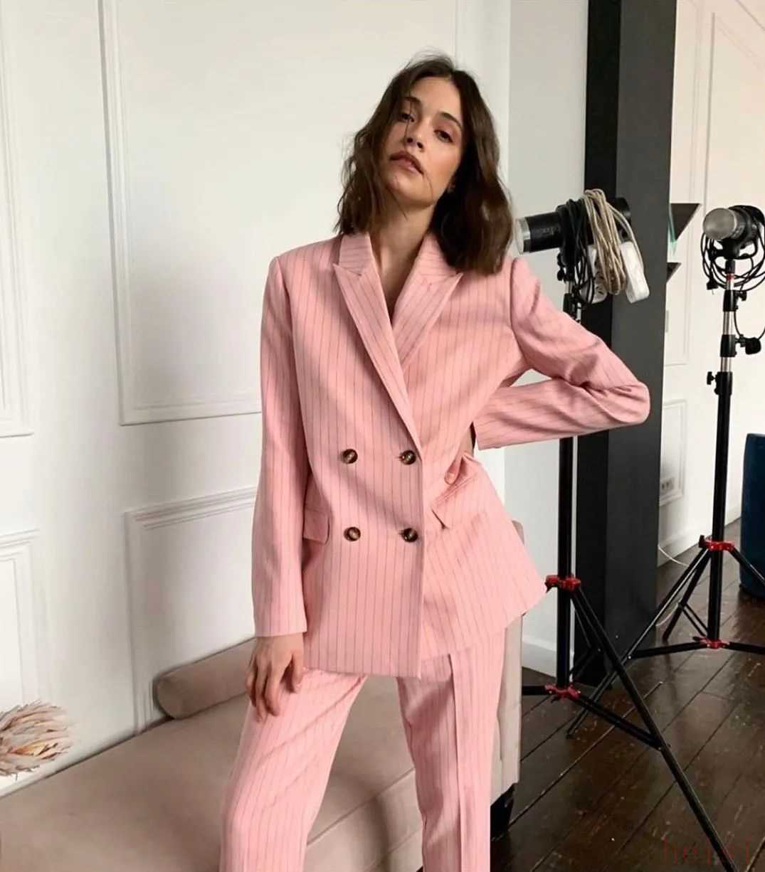 刻板的條紋西裝在注入了馬卡龍粉之后變得更為甜糯,隨性的造型用優(yōu)雅來調(diào)味,這樣在兩種風格間旋轉(zhuǎn)玩耍的自由感你愛了嗎?