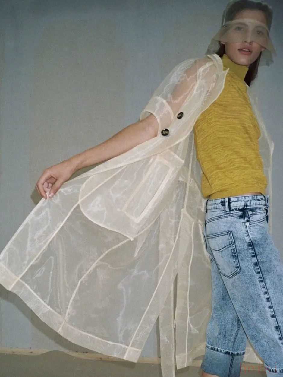 這款空氣薄衫還推出了加長款的薄紗外套,早秋的天氣特征正是早晚清涼、午后高溫暴曬,不妨把它當作防曬衫來穿正合適。