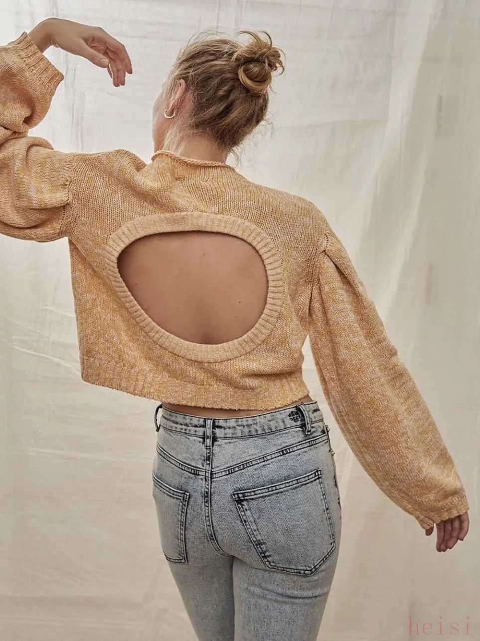 比如這件正面看起來平淡無奇的毛衣,當你轉(zhuǎn)過身后就會發(fā)現(xiàn)它的亮點所在,可能這就是傳說中的好戲還在后面吧!