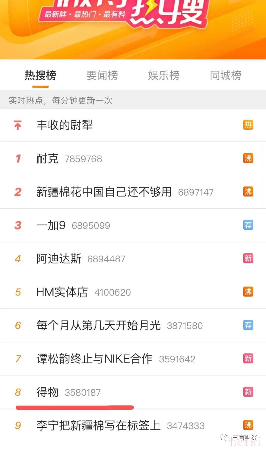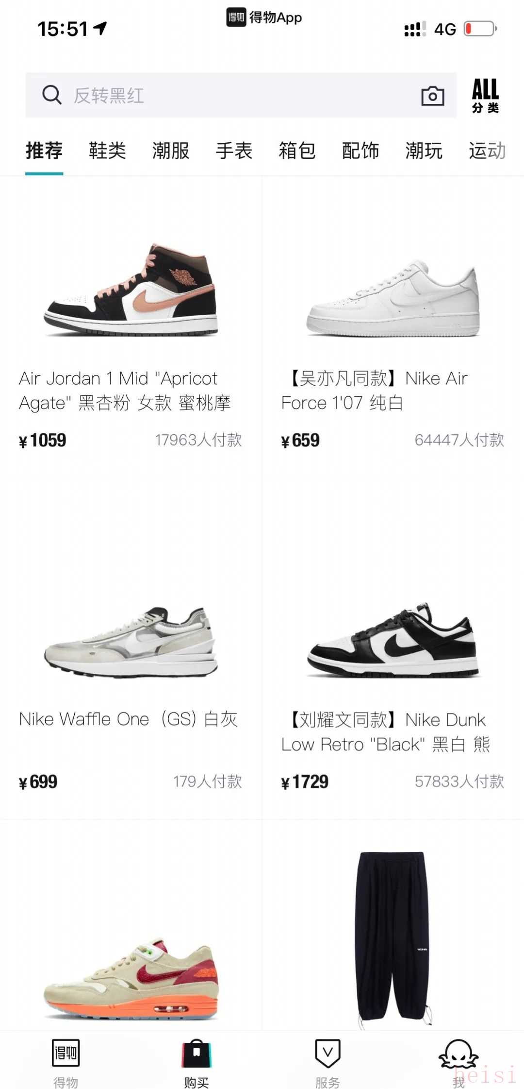 1. "得物 (Dewu) - 上熱搜:"