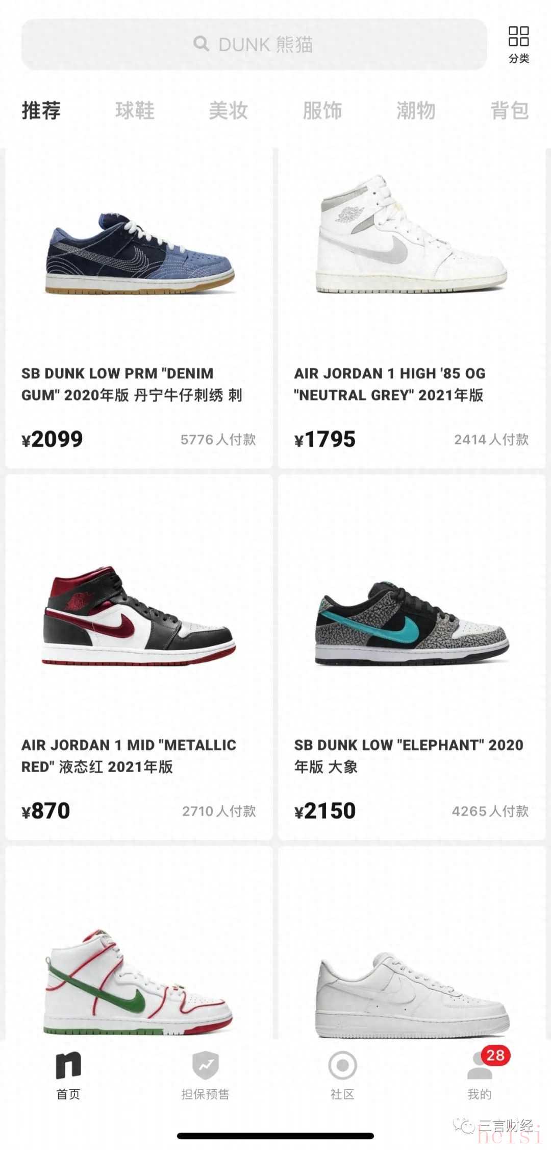 得物App導(dǎo)航欄全是耐克鞋得物與nice是目前市場上比較主流的品牌運(yùn)動(dòng)鞋購買渠道,三言財(cái)經(jīng)注意到,無論是得物還是nice,兩個(gè)平臺(tái)App中,商品頁面里展示的運(yùn)動(dòng)鞋絕大多數(shù)都是耐克、阿迪達(dá)斯等品牌。
