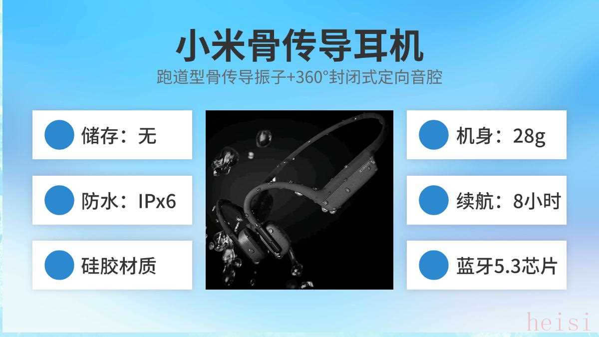 如果你是一名追求騎行時(shí)的極致音質(zhì)與佩戴體驗(yàn)的用戶,或者你是一名專業(yè)騎行運(yùn)動員及愛好者。那么這款耳機(jī)將是你騎行中的首選。這款耳機(jī)無論是在音質(zhì)還是防水跟穩(wěn)固性體驗(yàn)以及騎行中的表現(xiàn)都會給你更為專業(yè)的佩戴感受。音質(zhì)體驗(yàn):在實(shí)際音質(zhì)體驗(yàn)中這款耳機(jī)的音質(zhì),無論是人聲還是低音與高音都做到了明顯的提升。使得在實(shí)際聽歌時(shí)這款耳機(jī)人聲可以感受到更明顯的強(qiáng)化,高音則是進(jìn)行了優(yōu)化處理,使得在聽高音歌曲時(shí)沉浸感更強(qiáng)。低音部位則是延續(xù)了上一代的配飾。最值得一提的是這款耳機(jī)具備了南開首創(chuàng)的OT降漏音專利技術(shù),有效的減少了骨傳導(dǎo)耳機(jī)一直以來漏音的問題。實(shí)測音量開至百分之五十不會出現(xiàn)漏音現(xiàn)象。防水體驗(yàn):在實(shí)際體驗(yàn)中這款耳機(jī)的防水性能得到了提升,無論是在運(yùn)動時(shí)出汗,還是下雨天,甚至是以及對游泳,洗澡時(shí)耳機(jī)都是可以正常使用的。實(shí)測耳機(jī)在洗澡時(shí)耳機(jī)里的歌曲清晰不卡頓。佩戴感受:在實(shí)際佩戴中,耳機(jī)采用了親膚級硅膠材質(zhì),戴著很貼合頭皮,甚至是在跑步,跳繩等運(yùn)動下也是穩(wěn)固佩戴。TOP2:小米骨傳導(dǎo)耳機(jī)