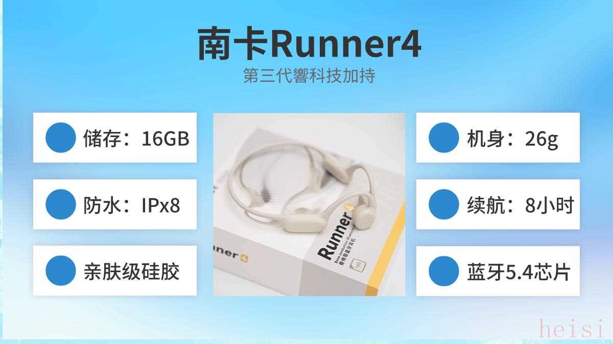 如果你更在一騎行時(shí)的數(shù)據(jù)以及健康監(jiān)控,這么這款耳機(jī)絕對是你的首選。這款耳機(jī)雖然整體配置并不算強(qiáng)勢。但是耳機(jī)可以搭配小米運(yùn)動之家進(jìn)行使用,可與小米全家桶進(jìn)行配套使用。在于小米運(yùn)動之家所配套使用后,這款耳機(jī)提供更加舒適的配套體驗(yàn)。音質(zhì)體驗(yàn):在實(shí)際的音質(zhì)體驗(yàn)中,低音的增強(qiáng)效果最為明顯。在聽搖滾歌曲時(shí)可以感覺明顯的音質(zhì)提升。人聲就有點(diǎn)過于平淡了,高音在播放個別高頻歌曲時(shí)會出現(xiàn)音質(zhì)模糊的現(xiàn)象。防水體驗(yàn):在實(shí)際的防水體驗(yàn)中,無論時(shí)運(yùn)動時(shí)的汗水還是下雨天的雨滴,甚至是不小心的觸水這款耳機(jī)都可以正常使用。佩戴感受:在實(shí)際佩戴感受中,無論是在跳繩還是跑步等一些需要劇烈運(yùn)動的場景中。這款耳機(jī)的佩戴效果都很穩(wěn)固。TOP3:南卡Runner4