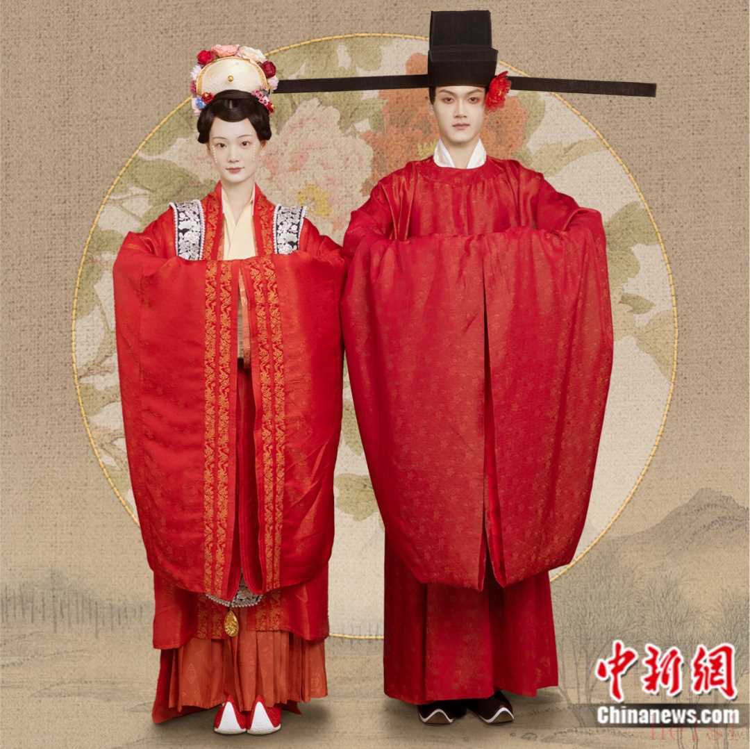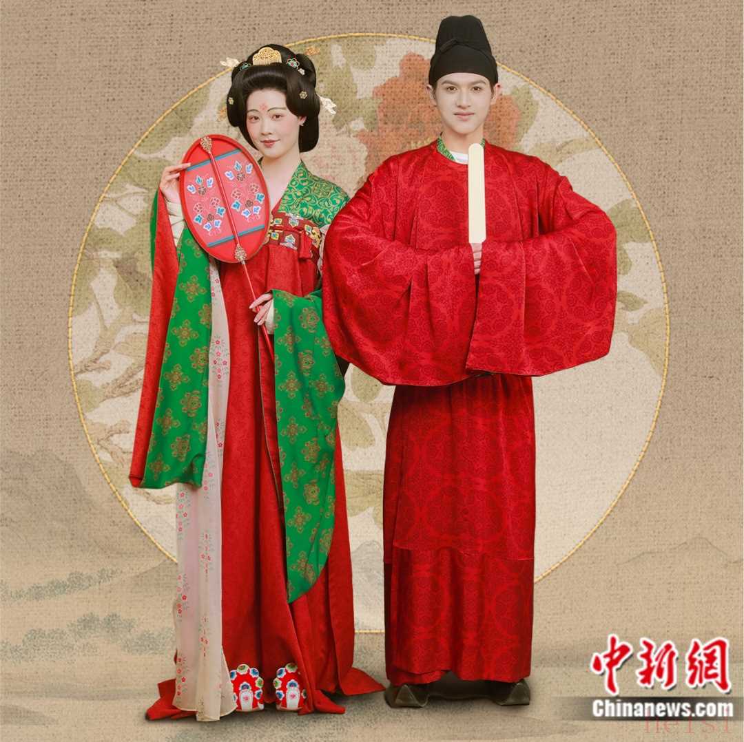 唐朝婚服遵循“紅男綠女”。受訪者供圖