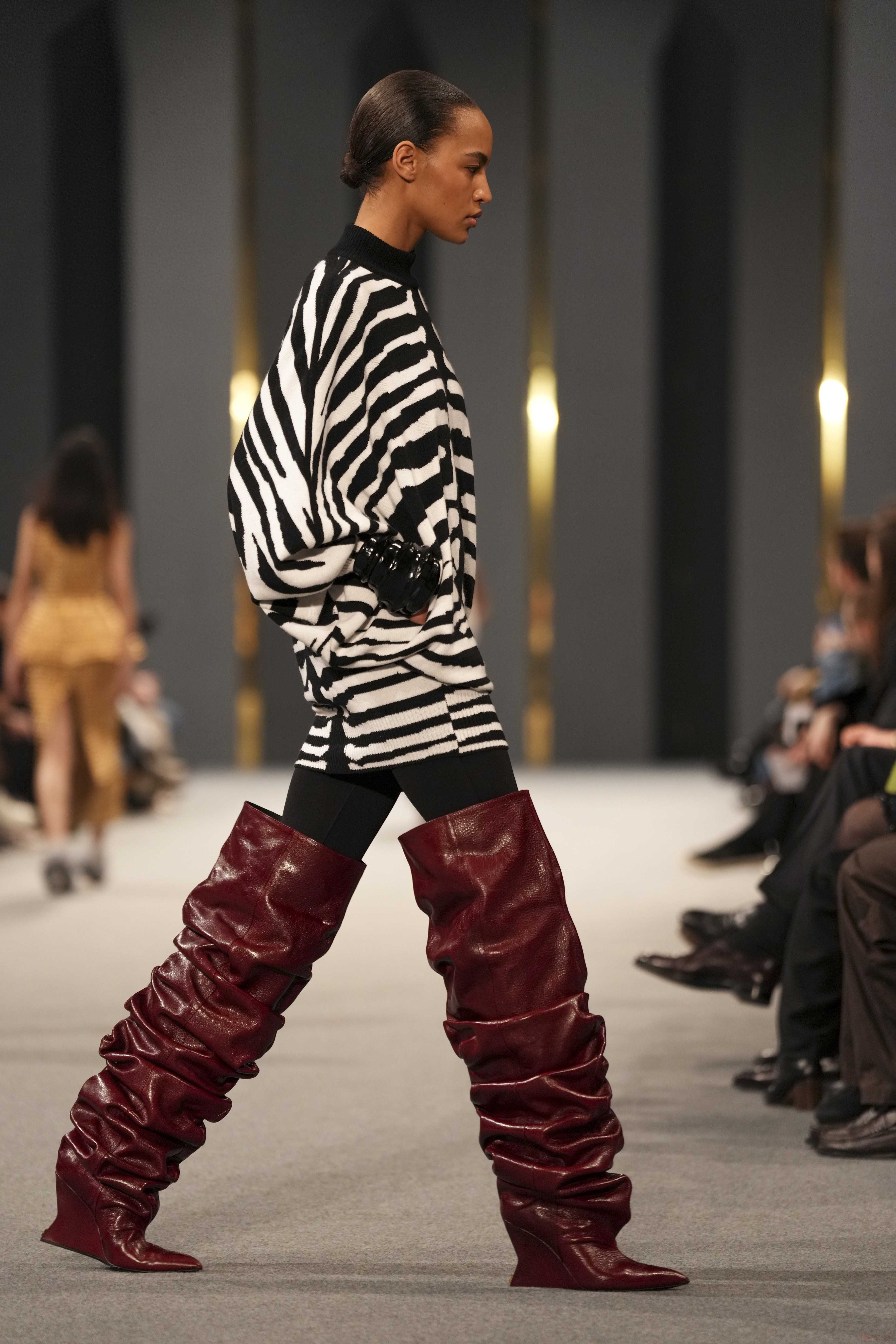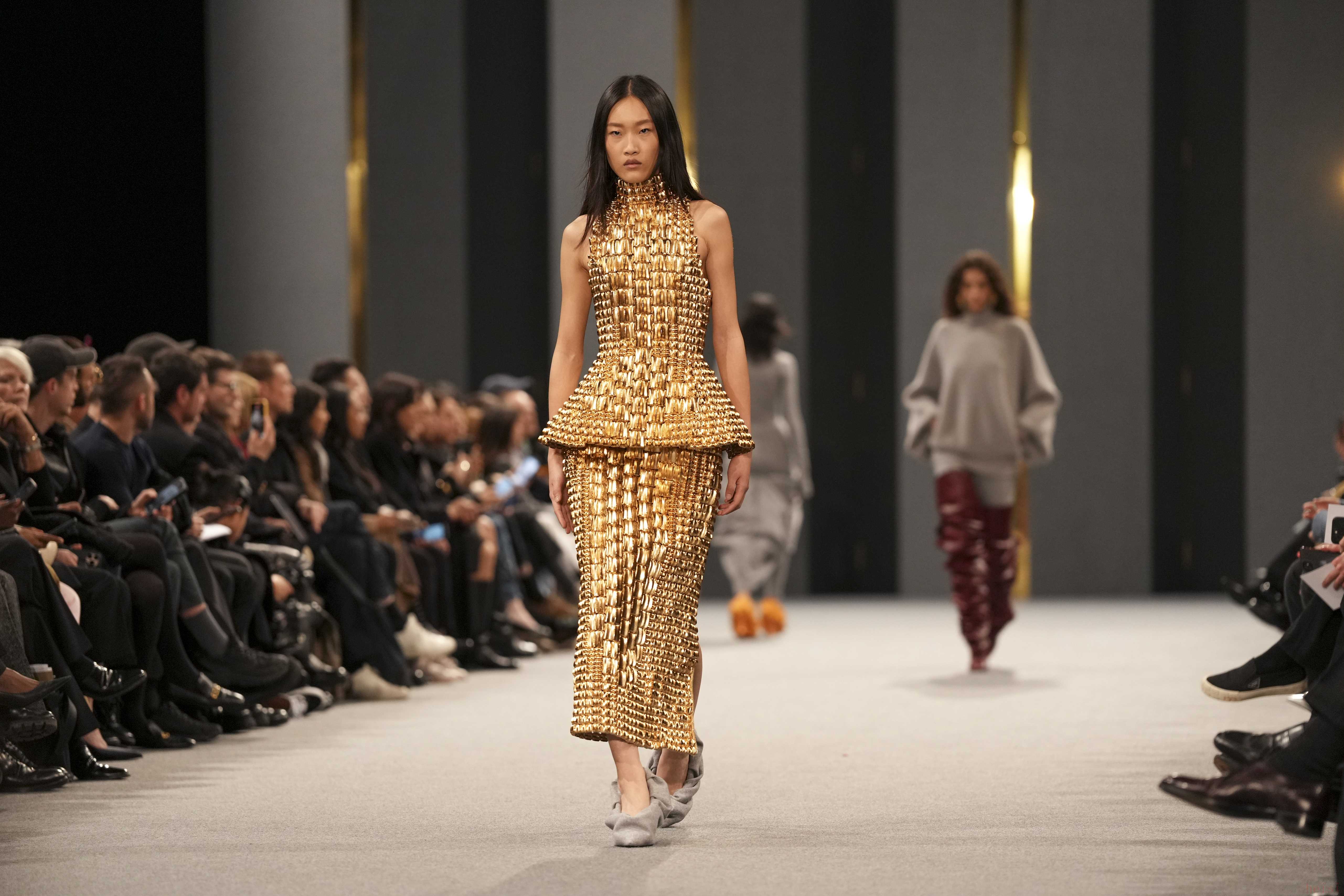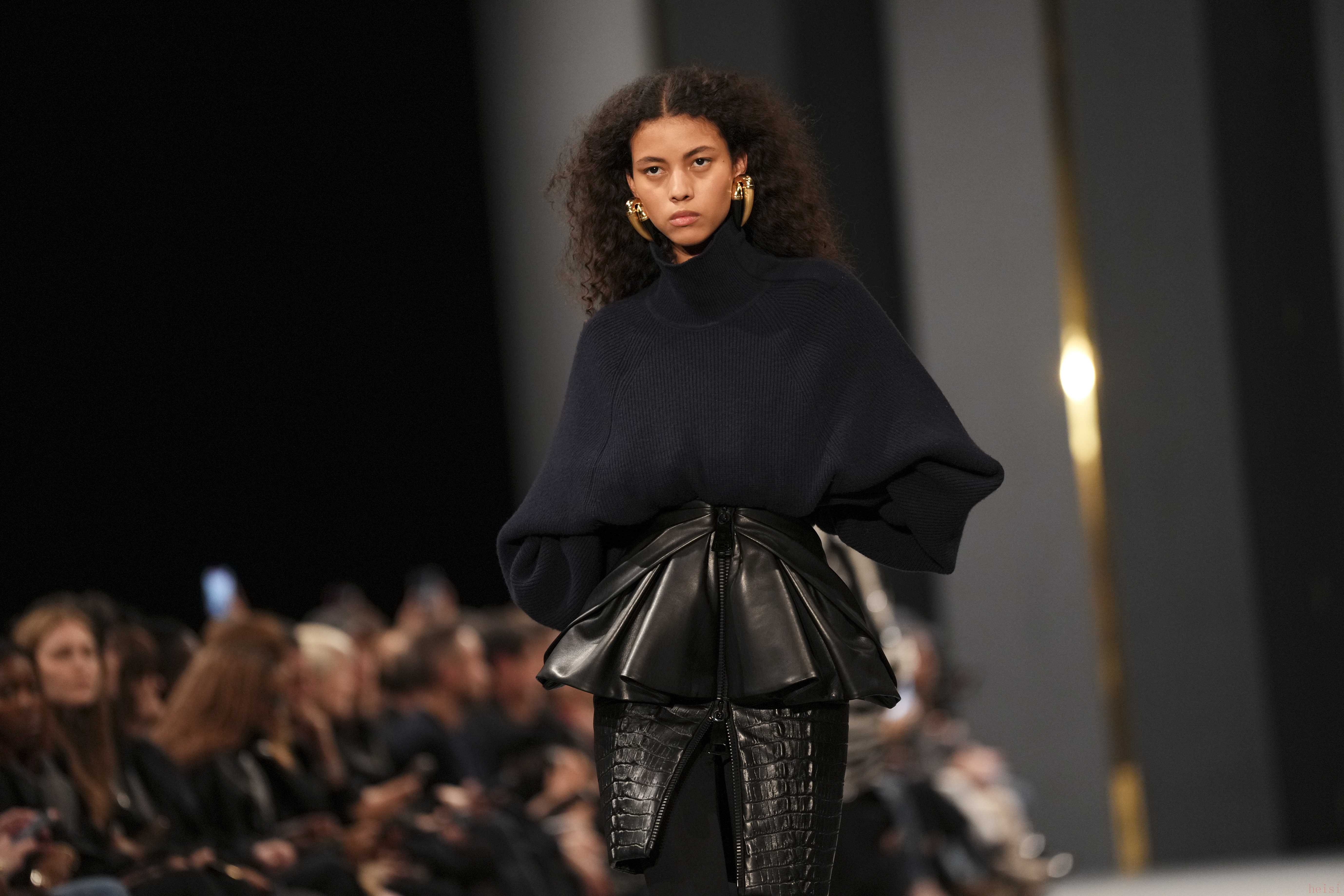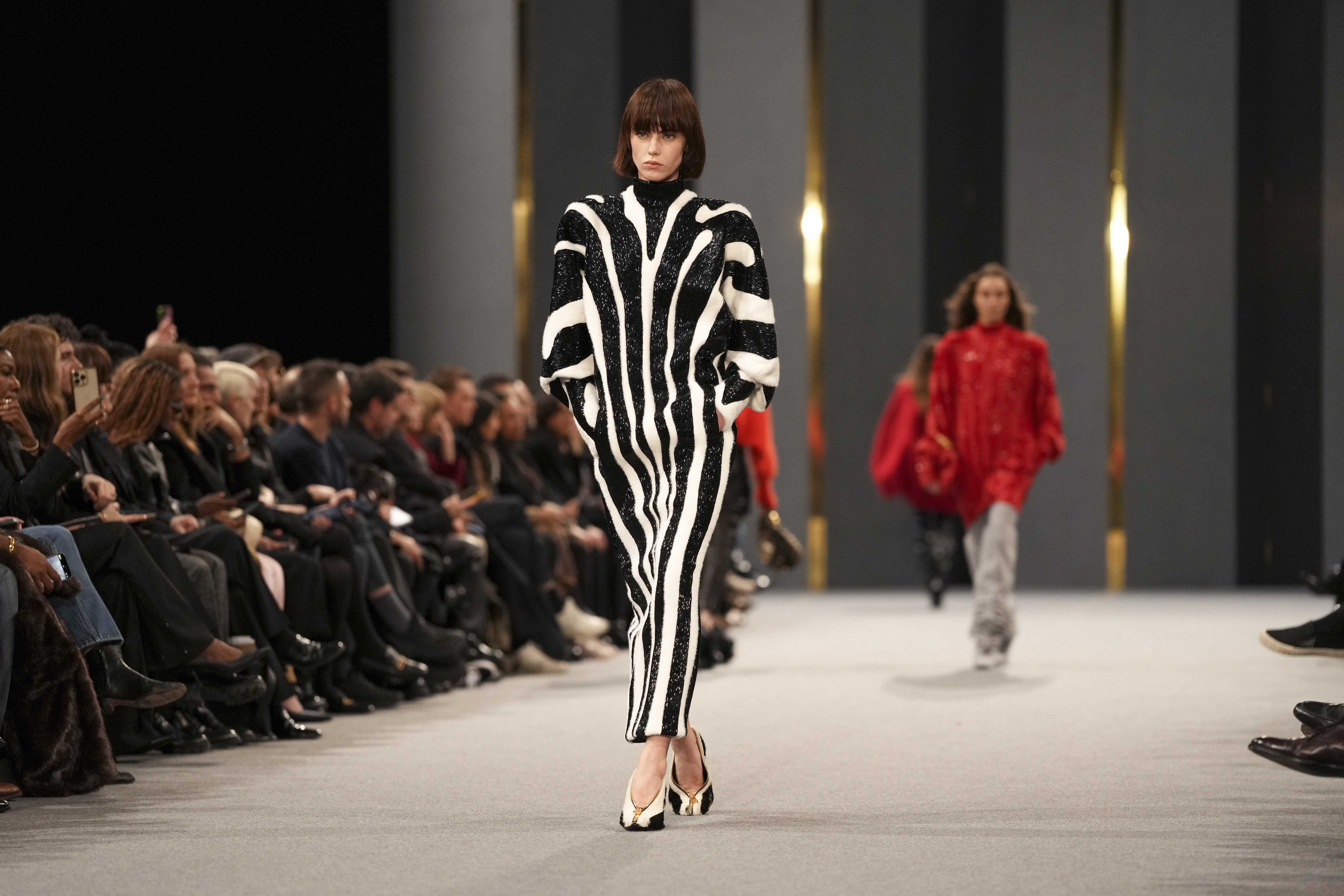 3月5日,模特在法國(guó)巴黎時(shí)裝周上展示Balmain品牌的2025/2026秋冬新款時(shí)裝。新華社/美聯(lián)