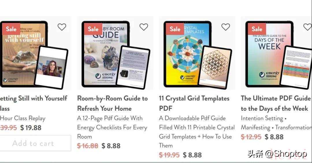 Energy Muse還售賣精油,香薰、沐浴鹽水等周邊產(chǎn)品,除此之外,在獨(dú)立站內(nèi)專設(shè)學(xué)習(xí)板塊,售賣水晶裝飾、水晶創(chuàng)意設(shè)計(jì)等學(xué)習(xí)教程,輔助用戶挑選不同場(chǎng)景使用的水晶產(chǎn)品,充實(shí)感興趣用戶的水晶知識(shí)儲(chǔ)備,滿足消費(fèi)者多樣化需求。
