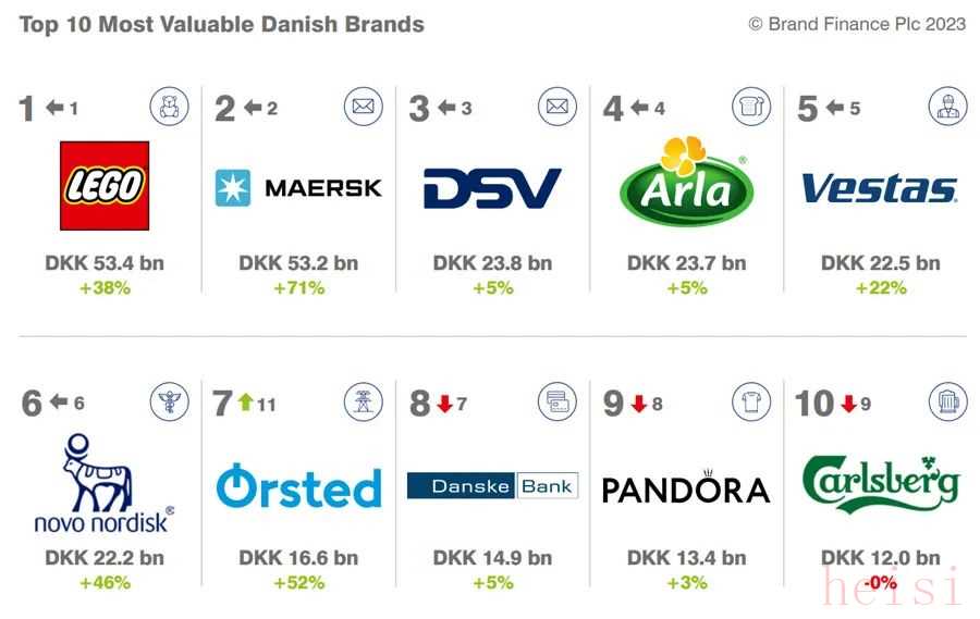 根據(jù)2023年發(fā)布的《丹麥品牌價(jià)值50強(qiáng)排行榜》,以下是一些在2023年被評(píng)為最有價(jià)值的丹麥品牌:
