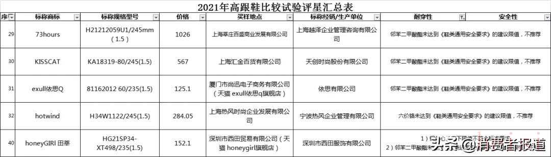 根據(jù)您提供的“40款高跟涼鞋對比”中得出的結(jié)論:"卓詩尼(Zozi)耐折性能不達(dá)標(biāo),HOTWIND安全性表現(xiàn)較差"。