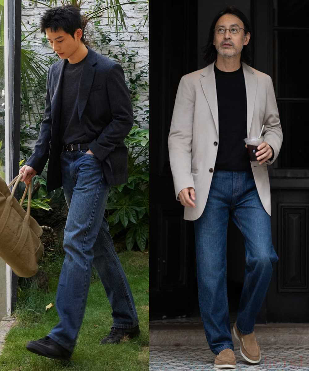 平時在穿西服時,可以混搭牛仔褲,兼顧正式與時尚風(fēng)格,不扮嫩不老氣,貼合自身年齡氣質(zhì),給人感覺舒適又得體。