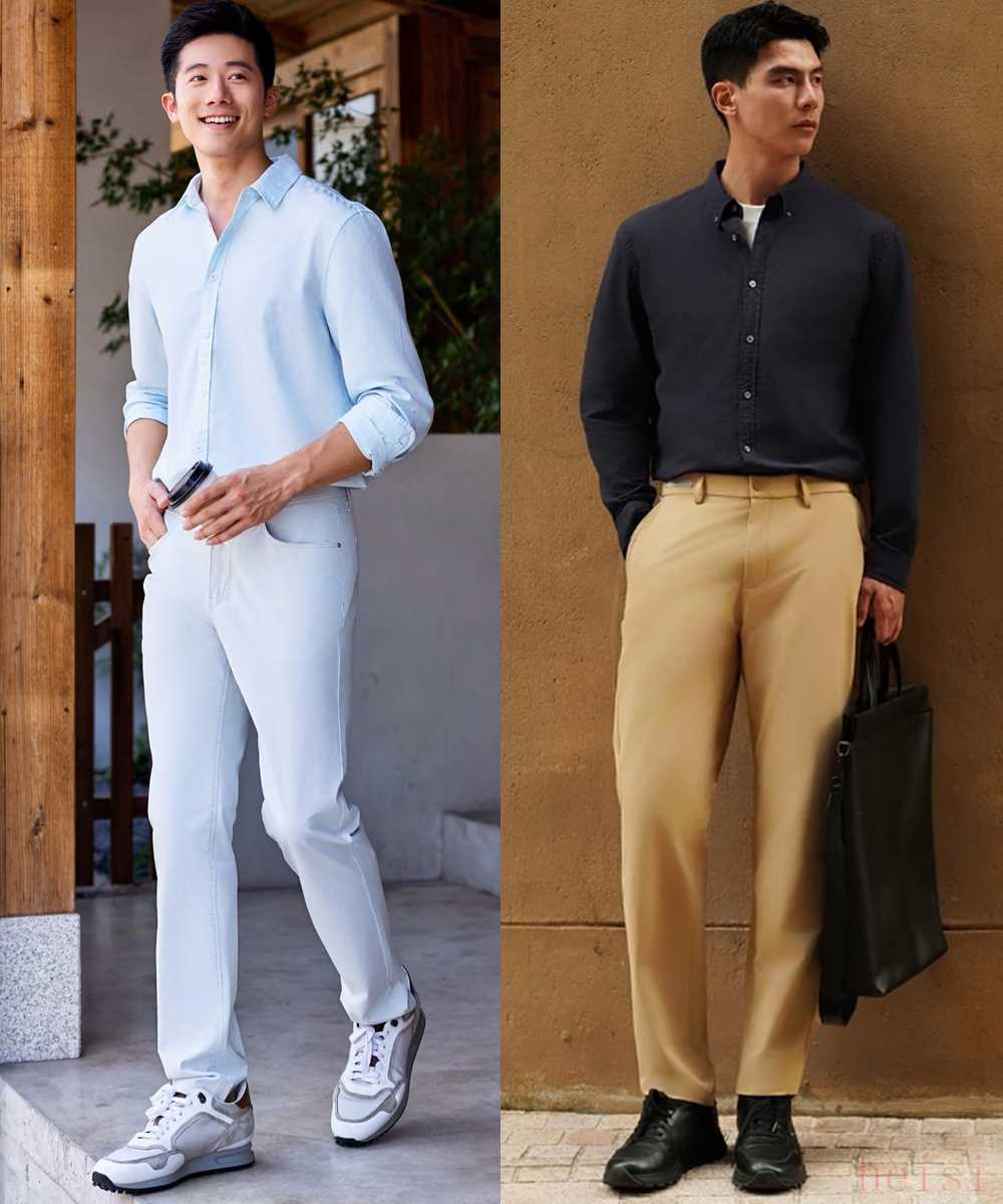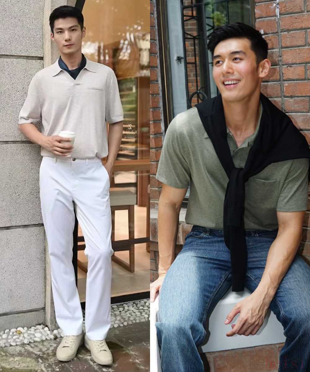 除了正式場合,在日常休閑中或輕商務(wù)穿搭中盡量不要露皮帶,以傳統(tǒng)“塞褲腰”方式強(qiáng)調(diào)腰線即可,適當(dāng)扯出衣角修飾腰腹,看著自然舒適。