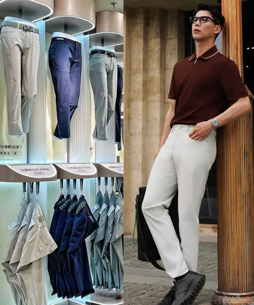 九牧王最出名的就是它們家的“小黑褲”,銷量曾創(chuàng)下吉尼斯世界紀(jì)錄,版型筆挺合身、松弛有度,穿上后你就不想再脫下來,舒適到完全不像是穿了件褲子在外面。