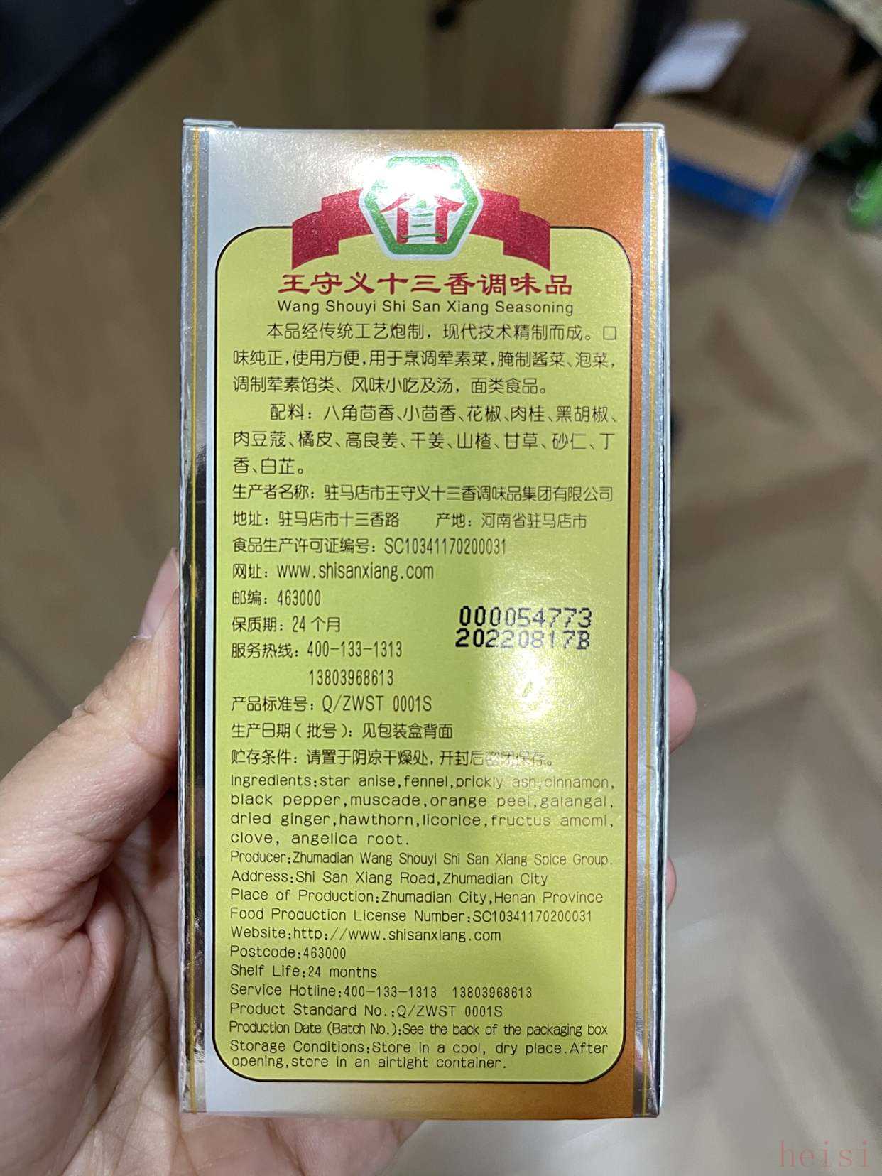 王守義十三香,這個老牌子是真夠良心的,賣價3.5元,據(jù)說廠家每盒的利潤只有幾分錢,配料表簡直一股清流,八角茴香、花椒、肉桂、山楂……清一色“藥食同源”的本草選手,用料很講究。